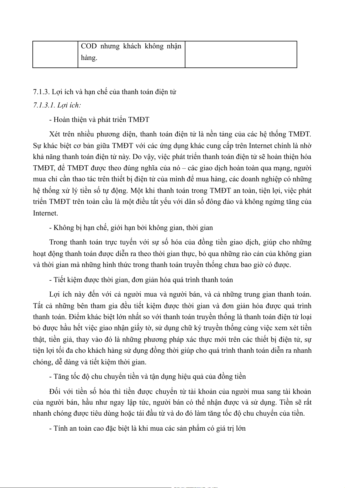 7.1.3. Lợi ích và hạn chế của thanh toán điện tử 7.1.3.1. Lợi ích: