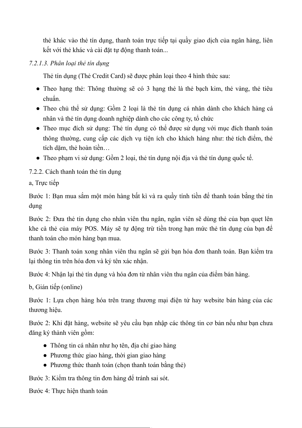 7.2.3. Lưu ý khi thanh toán bằng thẻ tín dụng...........................................................13