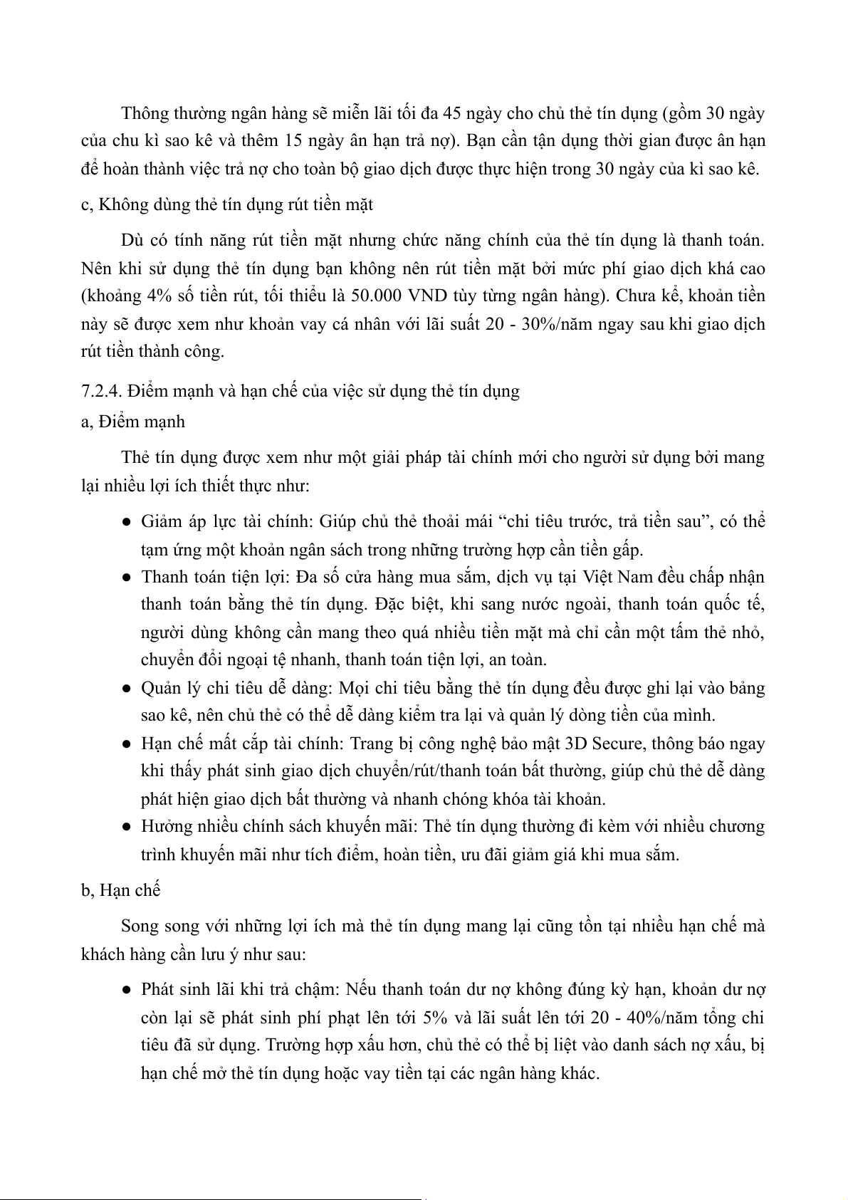 7.2.4. Điểm mạnh và hạn chế của việc sử dụng thẻ tín dụng.................................... 14
