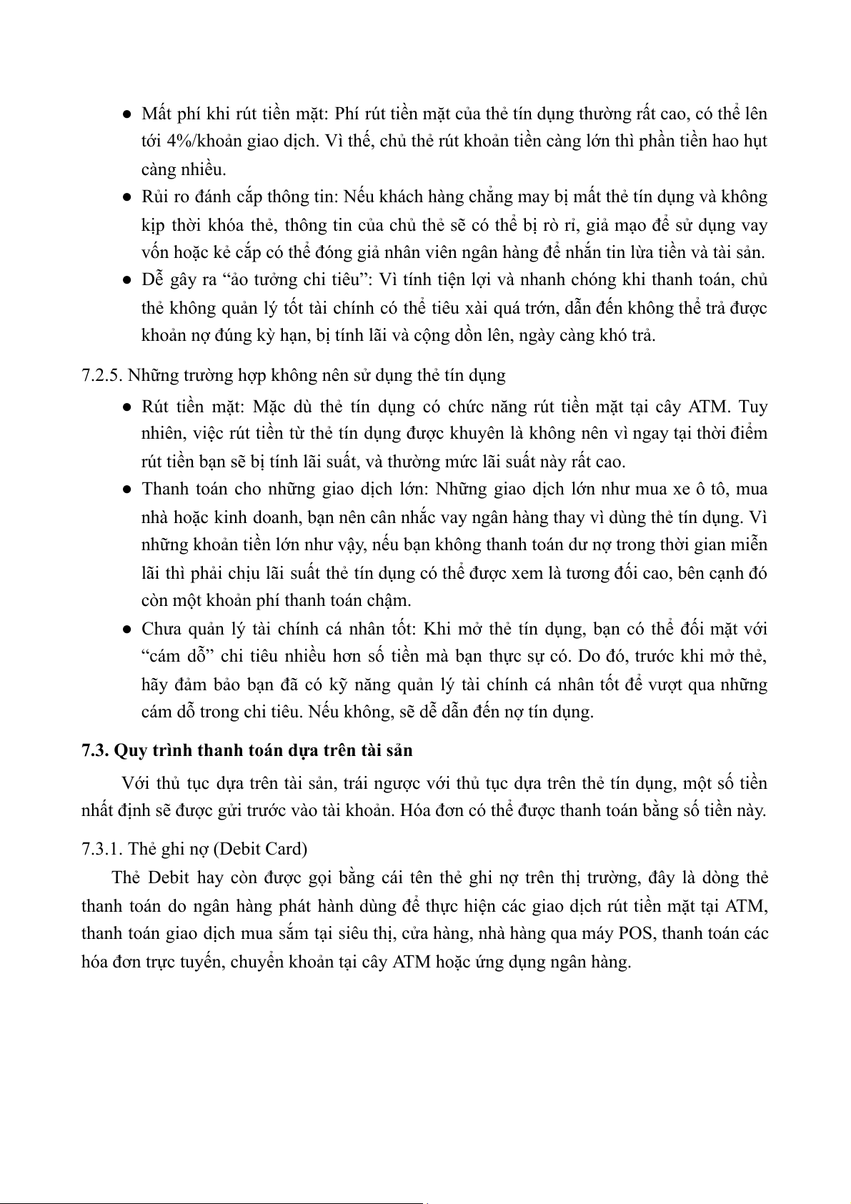 7.2.5. Những trường hợp không nên sử dụng thẻ tín dụng........................................15