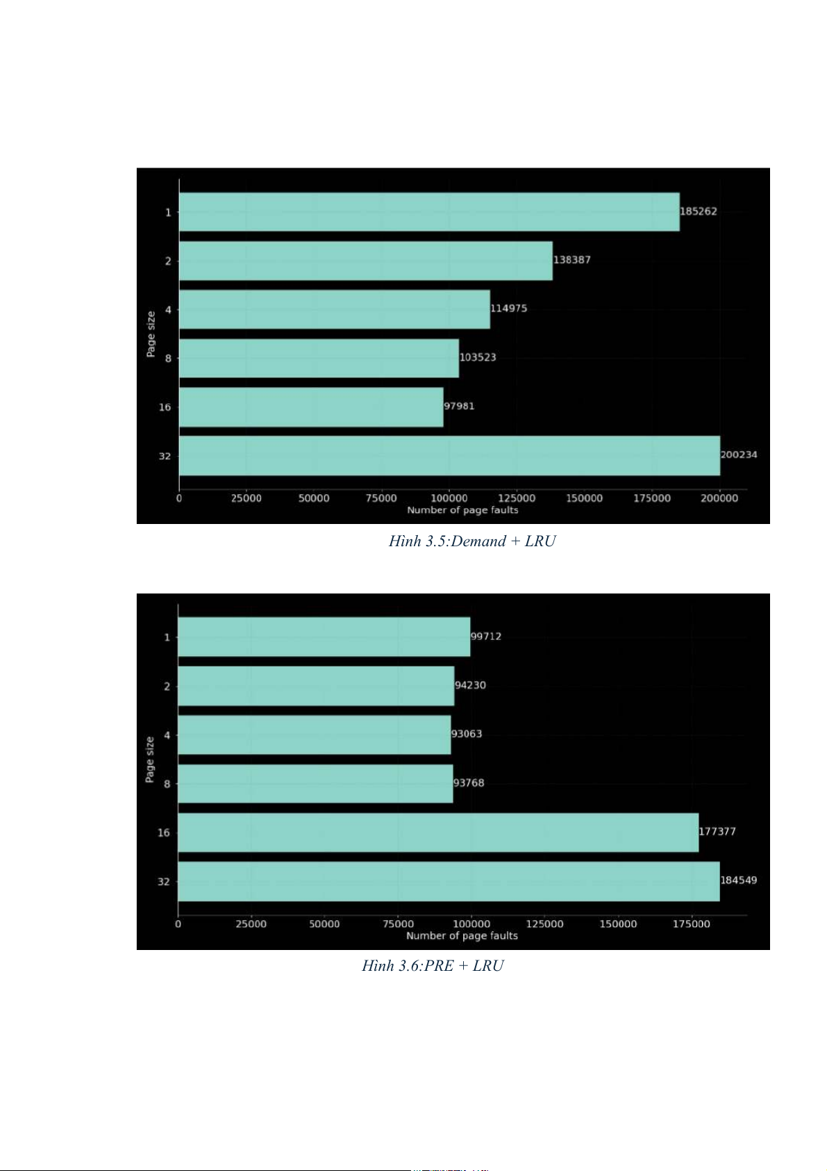 3.1. Số lỗi trang theo kích thước trang Hình 3.3:Demand + FIFO Hình 3.4:PRE + FIFO Hình 3.5:Demand + LRU Hình 3.6:PRE + LRU