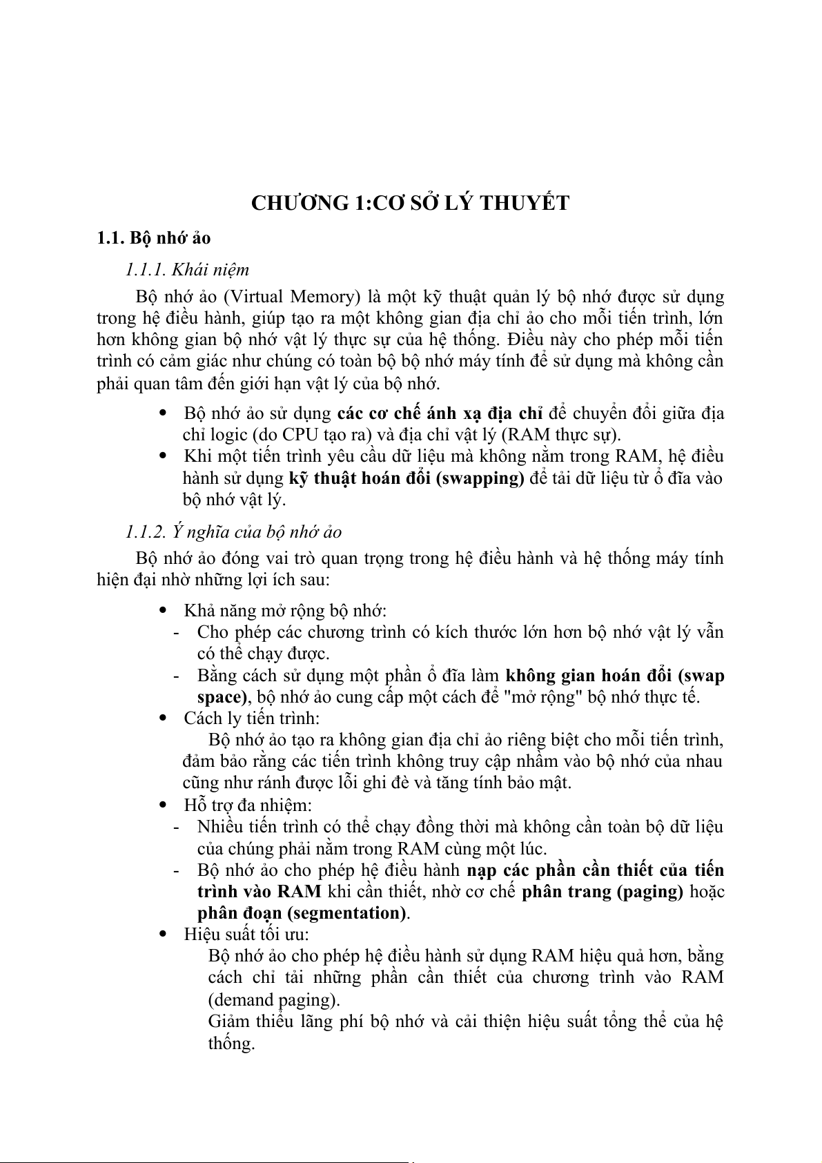 CHƯƠNG 1:CƠ SỞ LÝ THUYẾT 1.1. Bộ nhớ ảo 1.1.1. Khái niệm