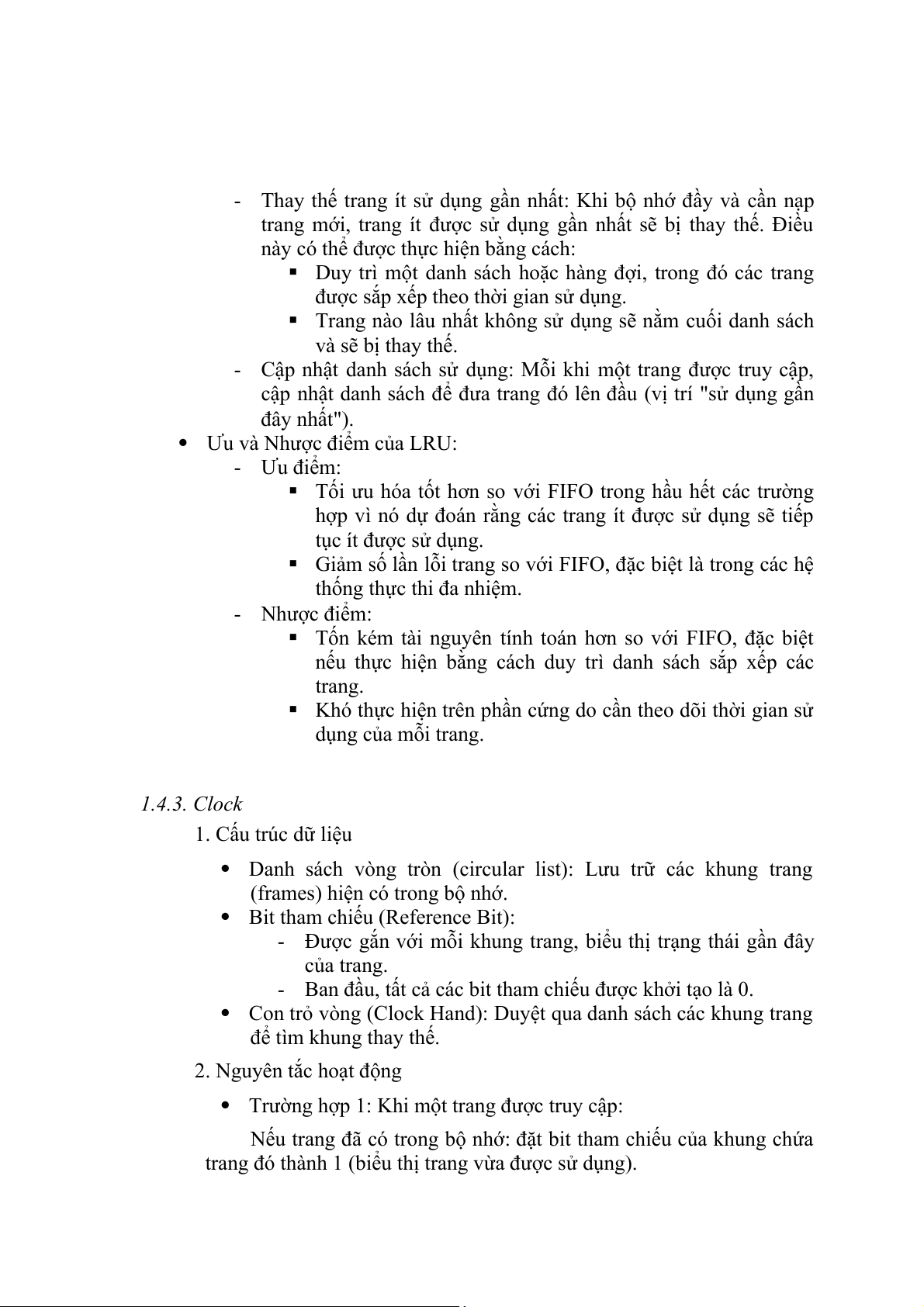 Thuật toán thay thế trang: FIFO, LRU, Clock.