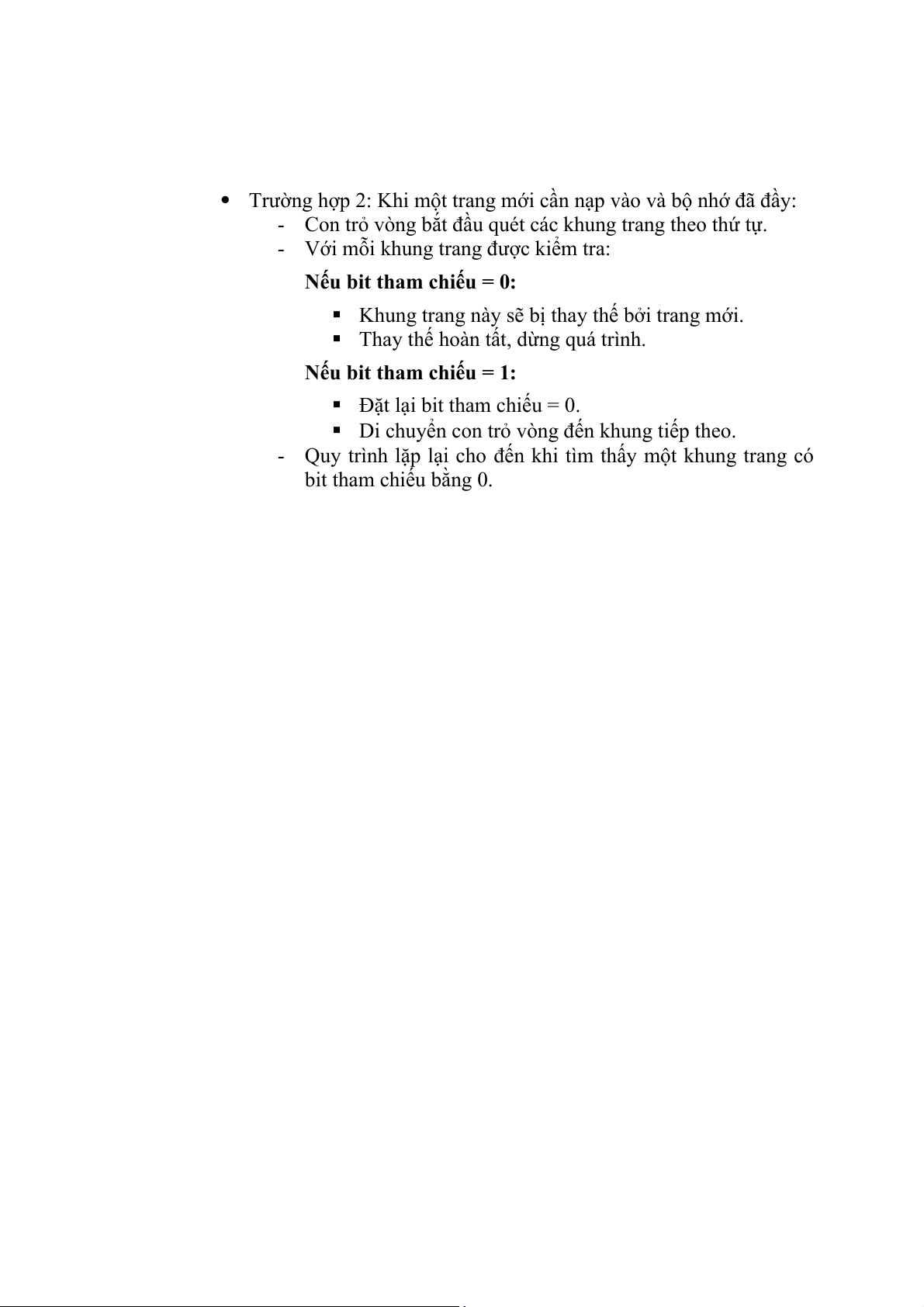 - Quy trình lặp lại cho đến khi tìm thấy một khung trang có bit tham chiếu bằng 0.