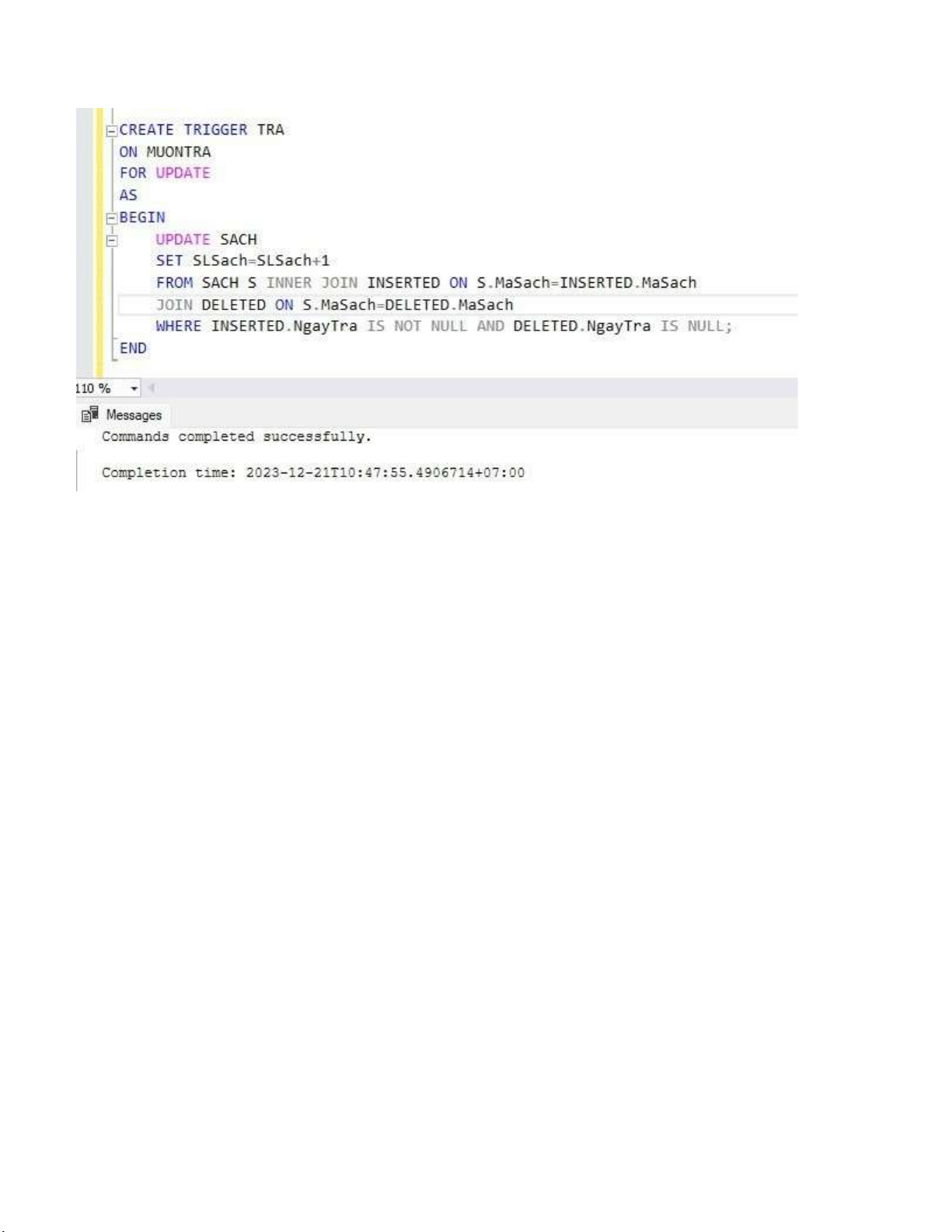 - Cập nhật số lượng sách trong bảng SACH khi có sinh viên trả sách: lOMoAR cPSD| 59062190