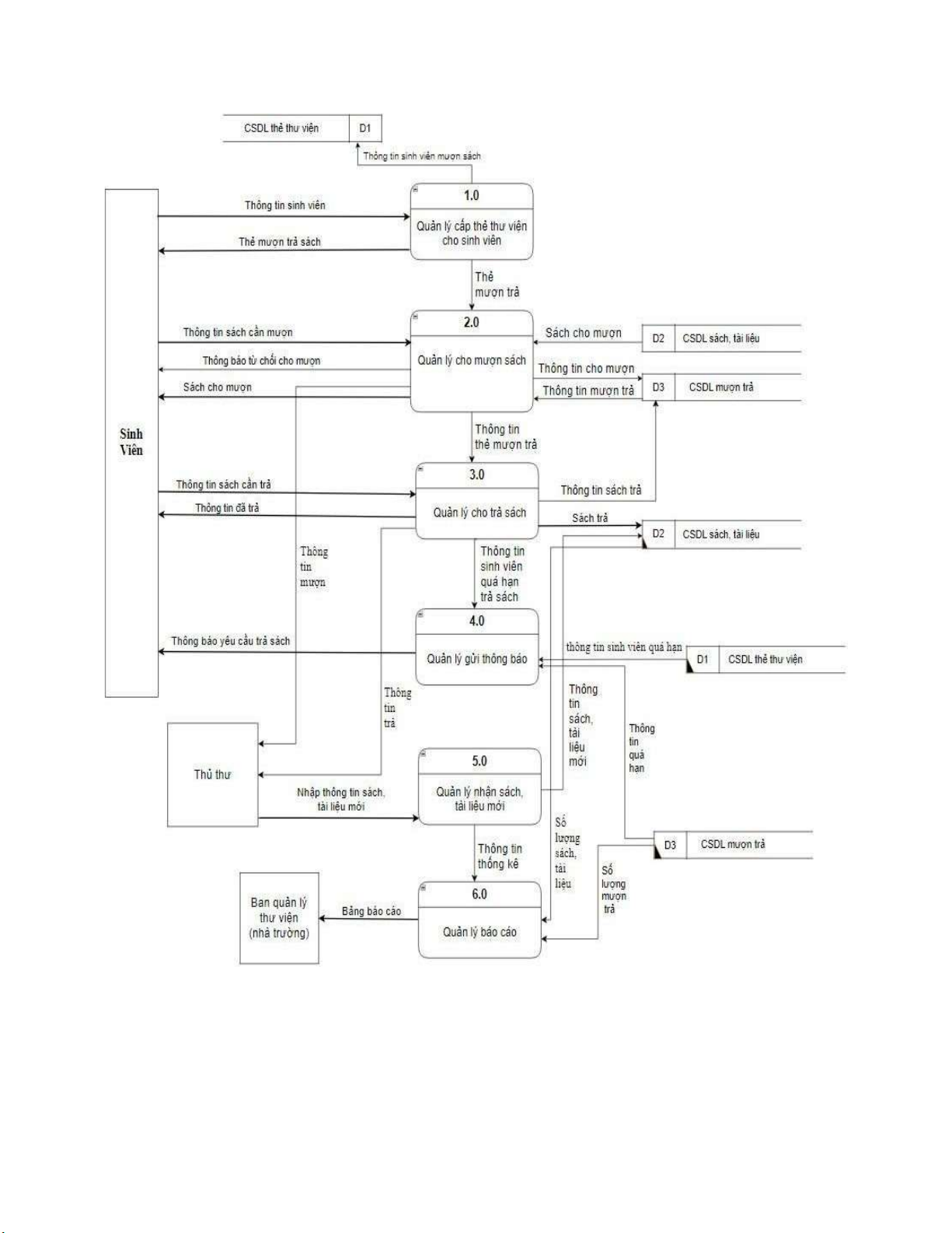 Sơ đồ dòng dữ liệu mức 1 của quá trình 3.0 - xử lý cho trả sách, tài liệu: lOMoAR cPSD| 59062190 4. lOMoAR cPSD| 59062190 5.