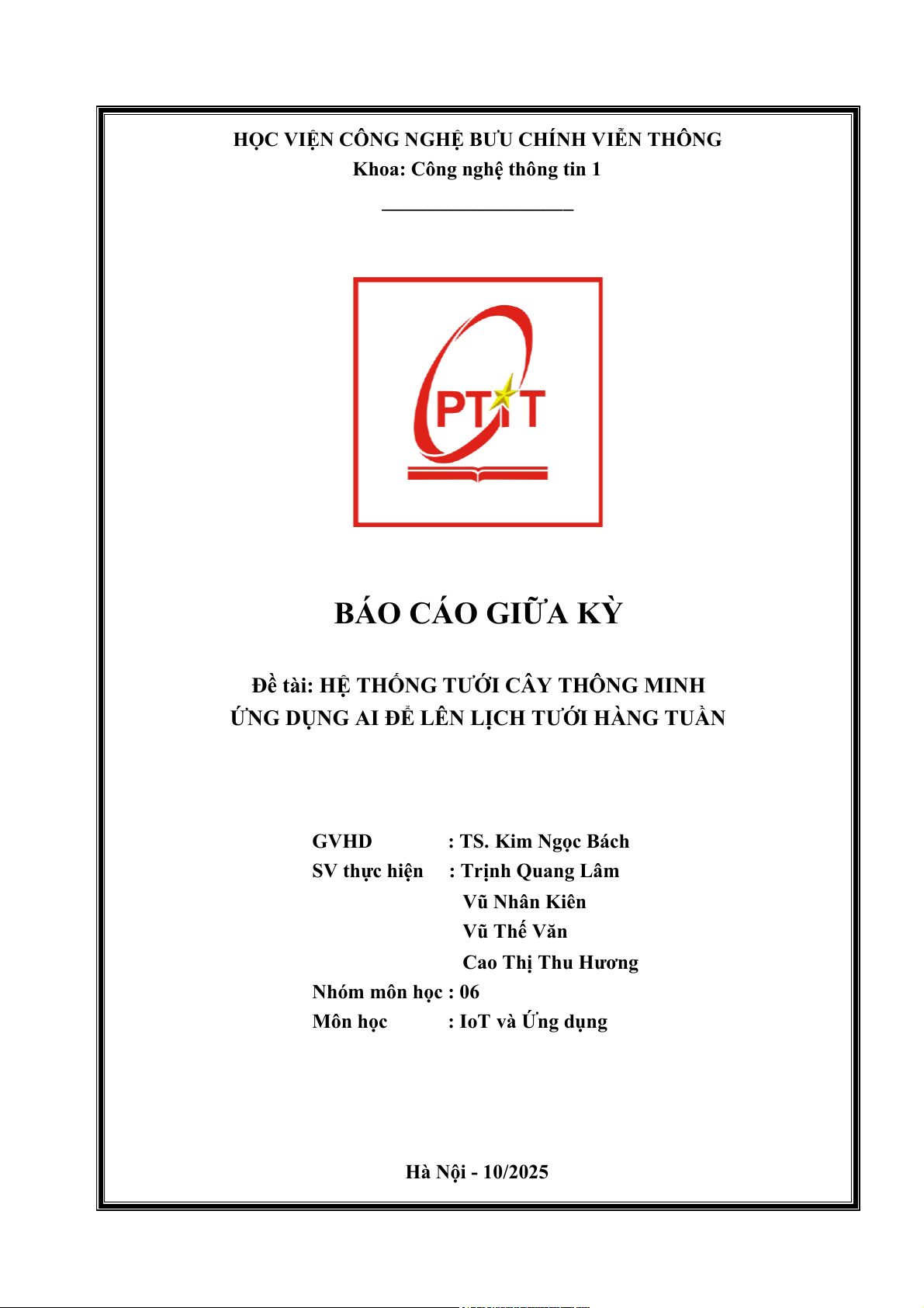 Môn học : IoT và Ứng dụng