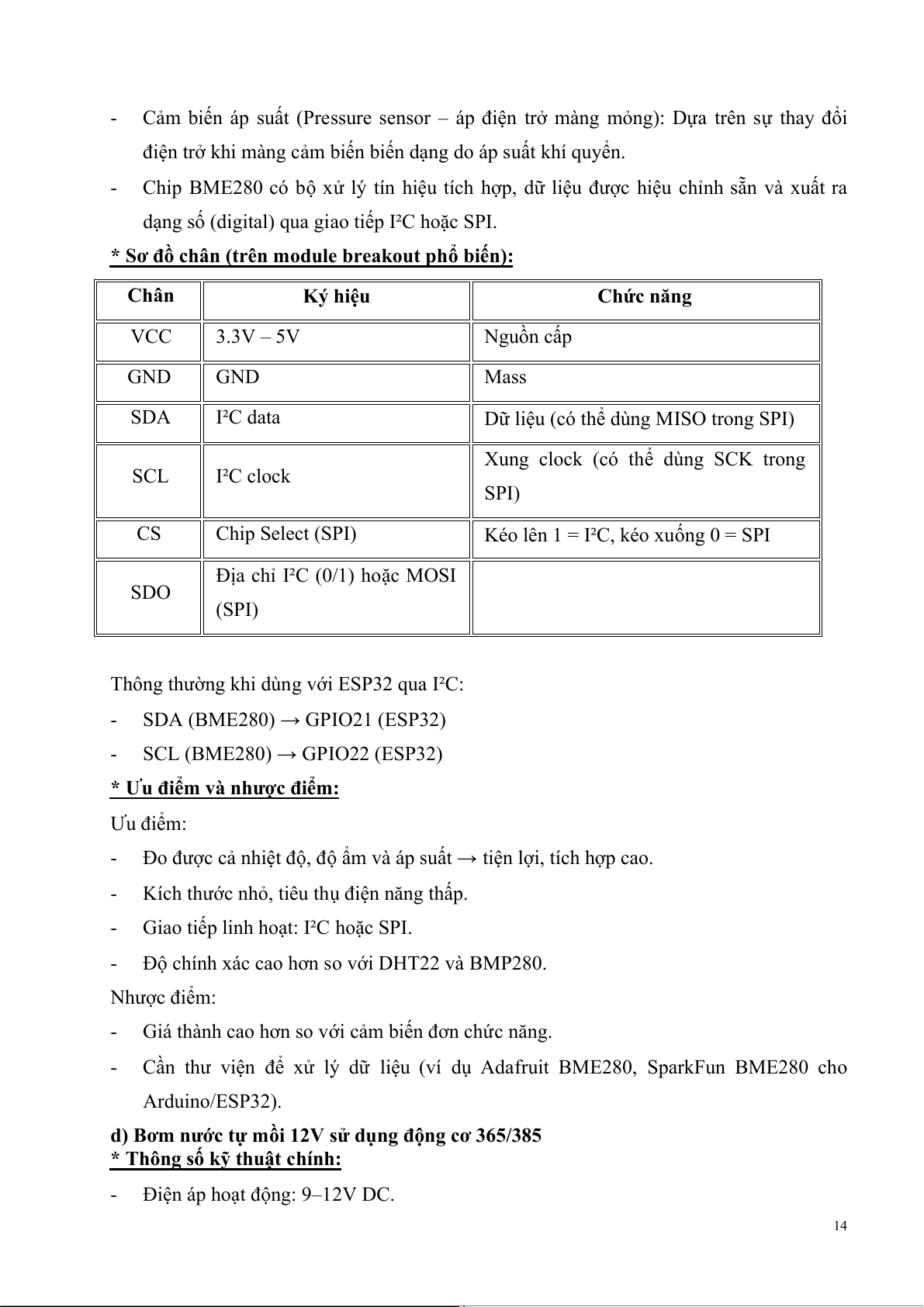- Cần thư viện để xử lý dữ liệu (ví dụ Adafruit BME280, SparkFun BME280 cho Arduino/ESP32).