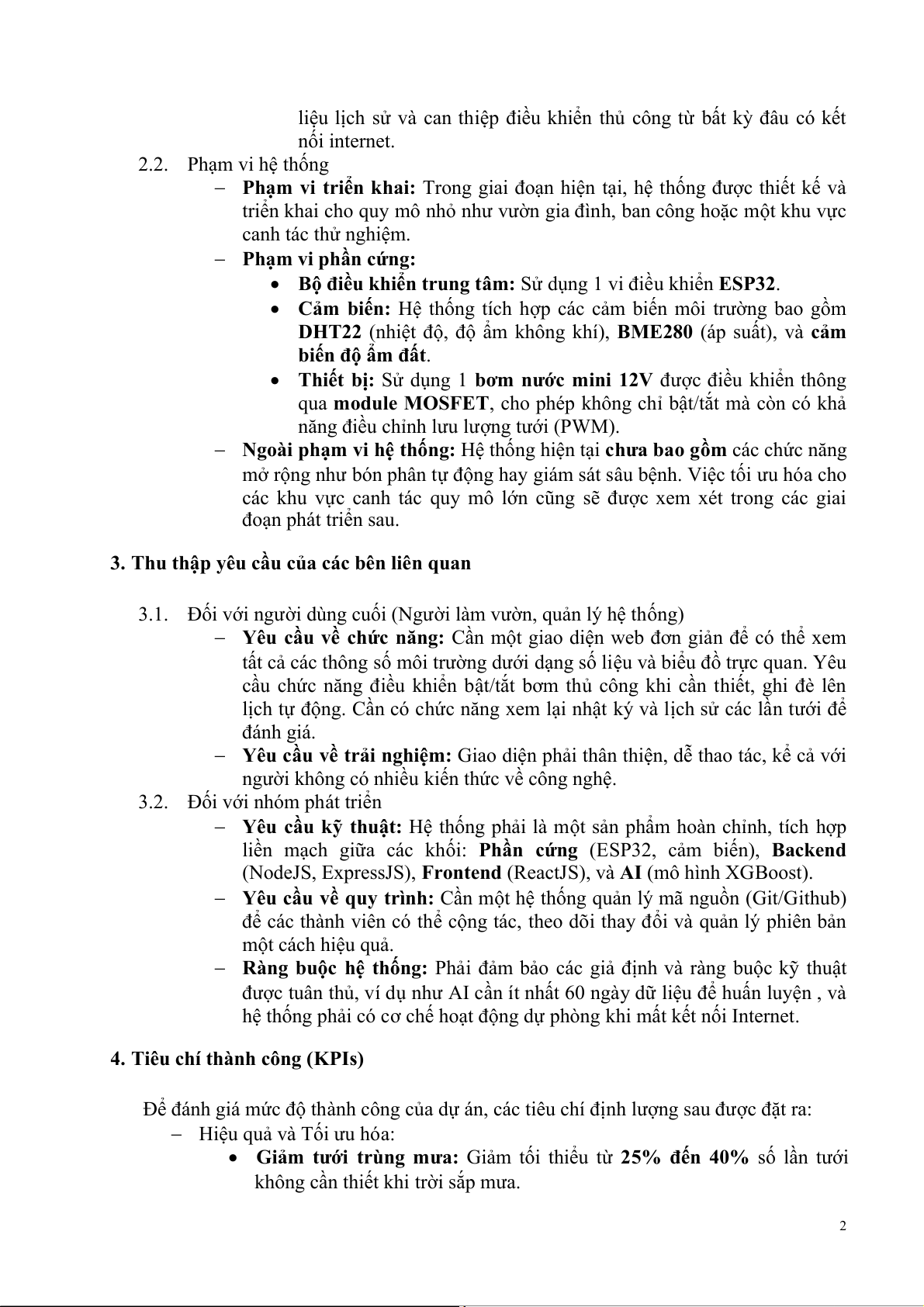 nông nghiệp thông minh, hiện đại và hiệu quả. Hệ thống sử dụng ESP32 làm bộ xử lý