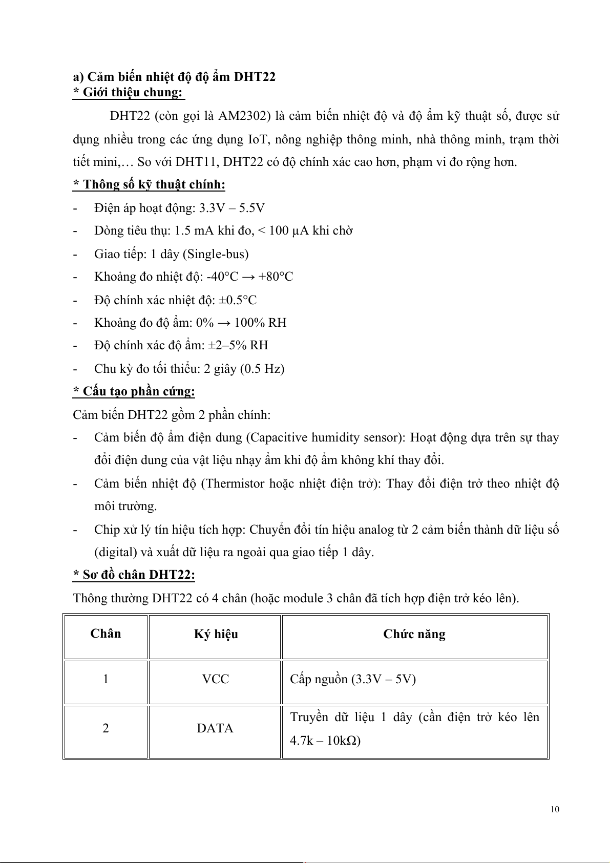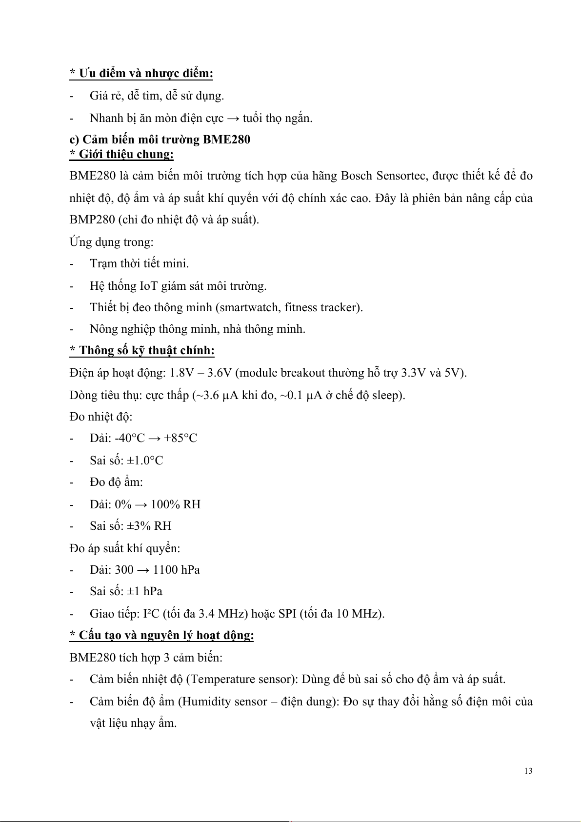DHT22 (nhiệt độ, độ ẩm không khí), BME280 (áp suất), và cảm