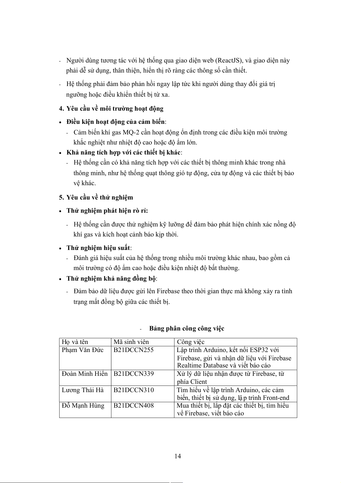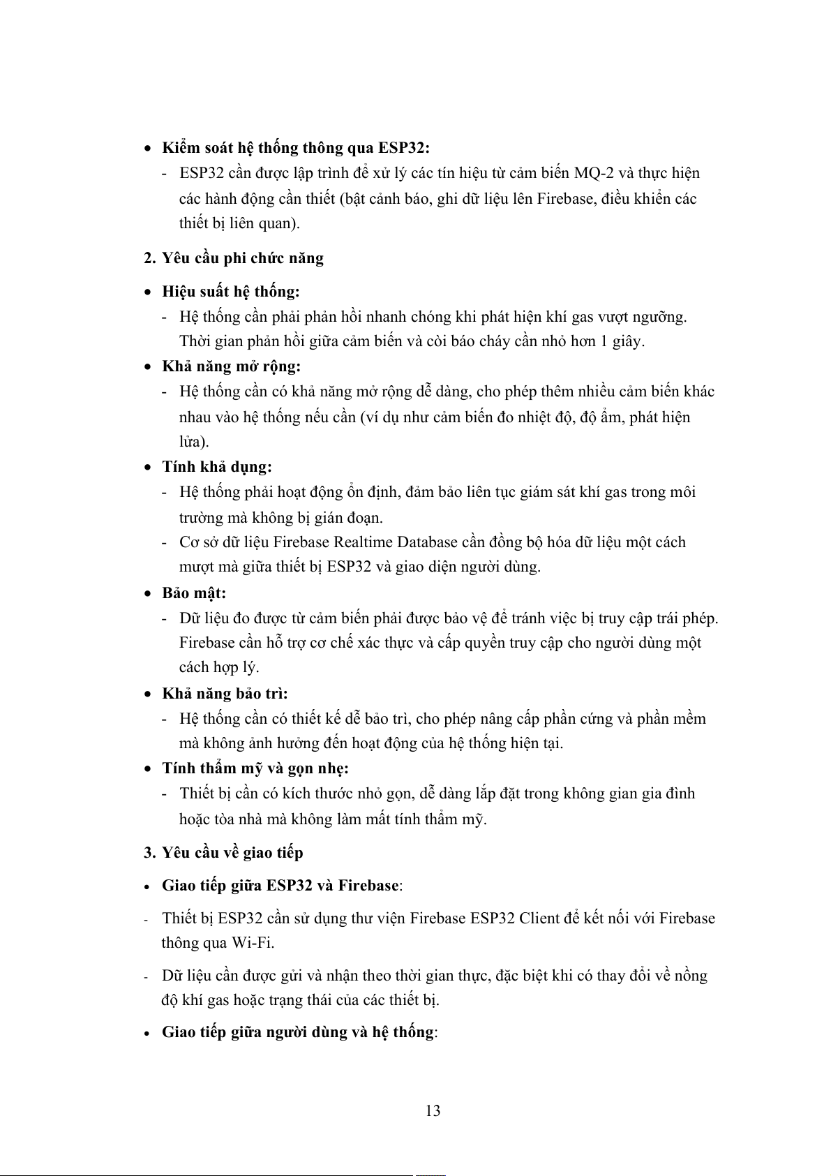 - Hệ thống phải hoạt động ổn định, đảm bảo liên tục giám sát khí gas trong môi