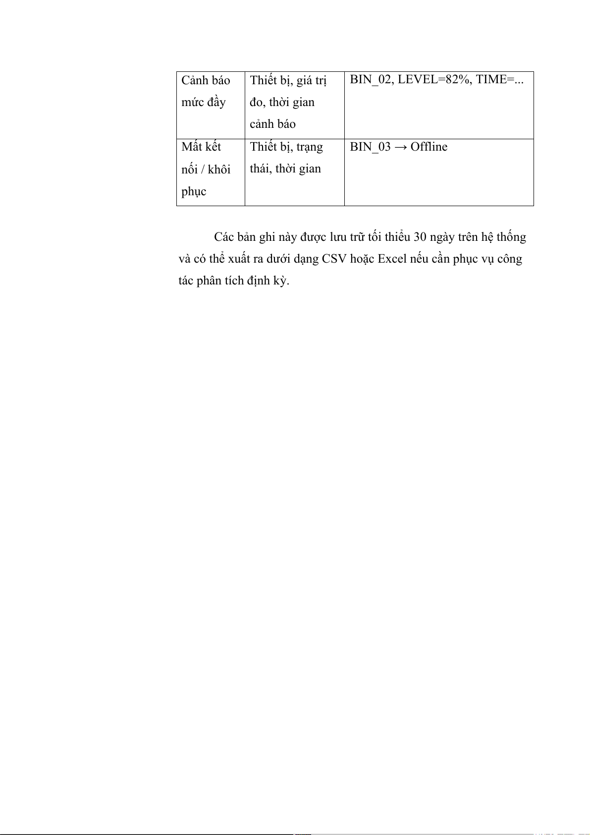 lý được tối thiểu 100 gói dữ liệu/phút mà không gây nghẽn hoặc mất mát thông tin. ⎯ Khi số l ợng ư thiết ị b vượt quá 30 thùng, ệ h thống phải ự t