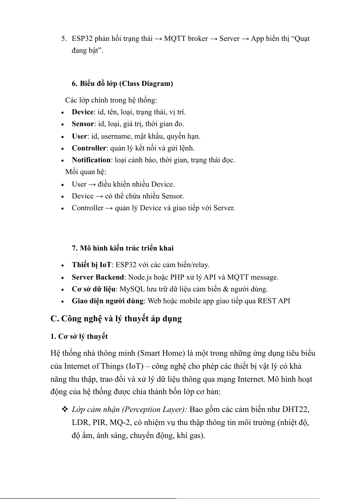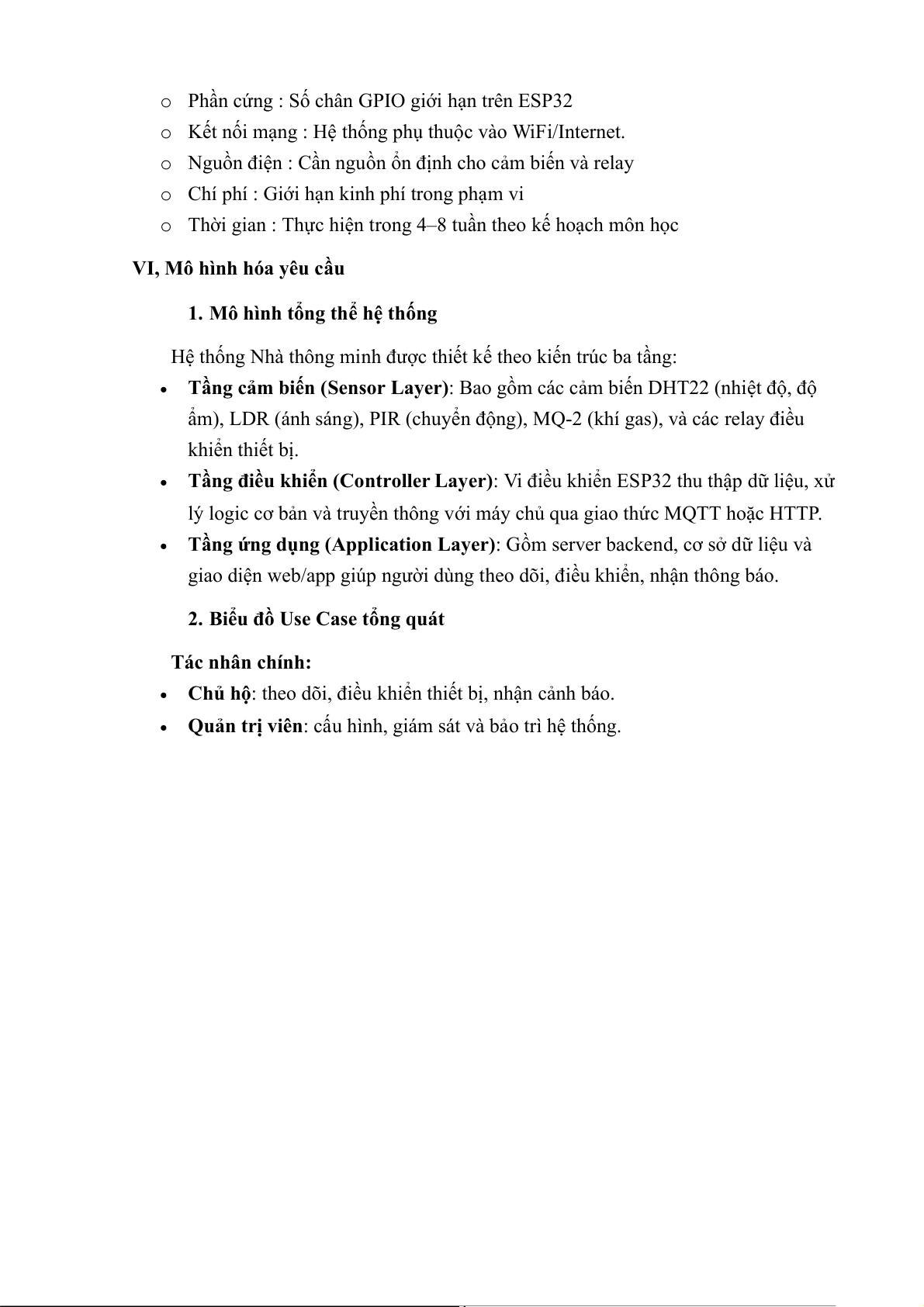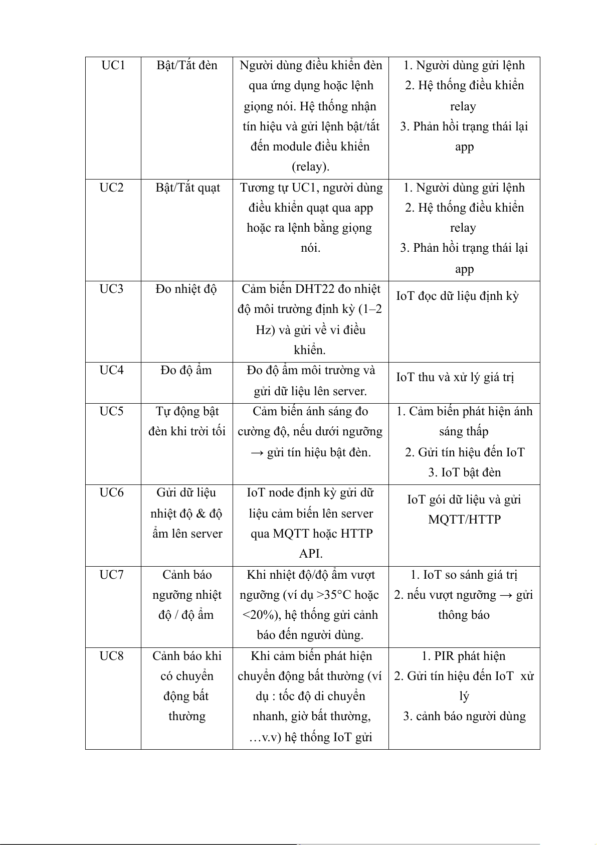 Ứng dụng điều khiển (web/app), cơ sở dữ liệu lưu trữ, và hệ thống truyền thông (MQTT hoặc HTTP). o Người dùng: