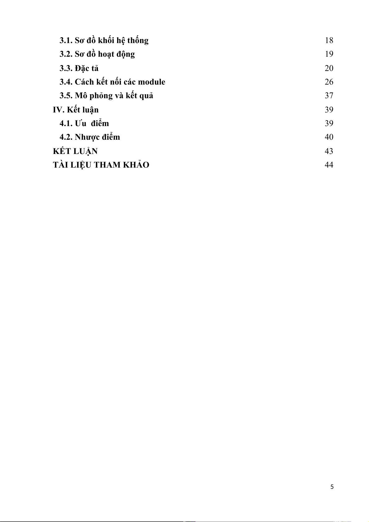 3.5. Mô phỏng và kết quả 37 IV. Kết luận 39 4.1. Ưu điểm 39 4.2. Nhược điểm 40 KẾT LUẬN 43 TÀI LIỆU THAM KHẢO 44 5