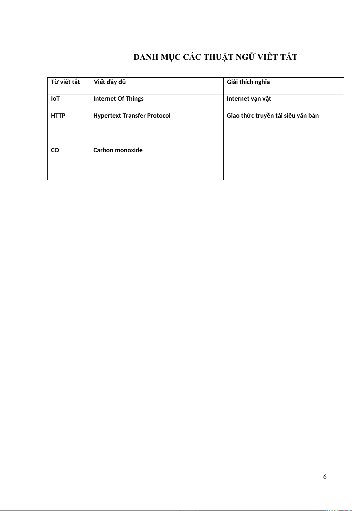 DANH MỤC CC THUẬT NGỮ VIẾT TẮT Từ viết tắt Viết đầy đủ Giải thích nghĩa IoT Internet Of Things Internet vạn vật HTTP