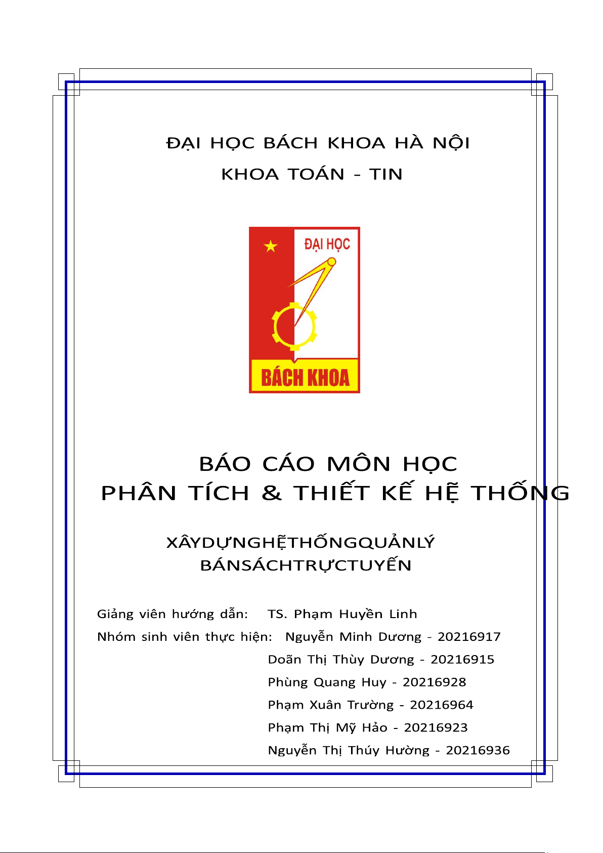 học Phân tích và thiết kế hệ thống, dưới sự hướng dẫn tận tâm của giảng viên chính lớp Phân