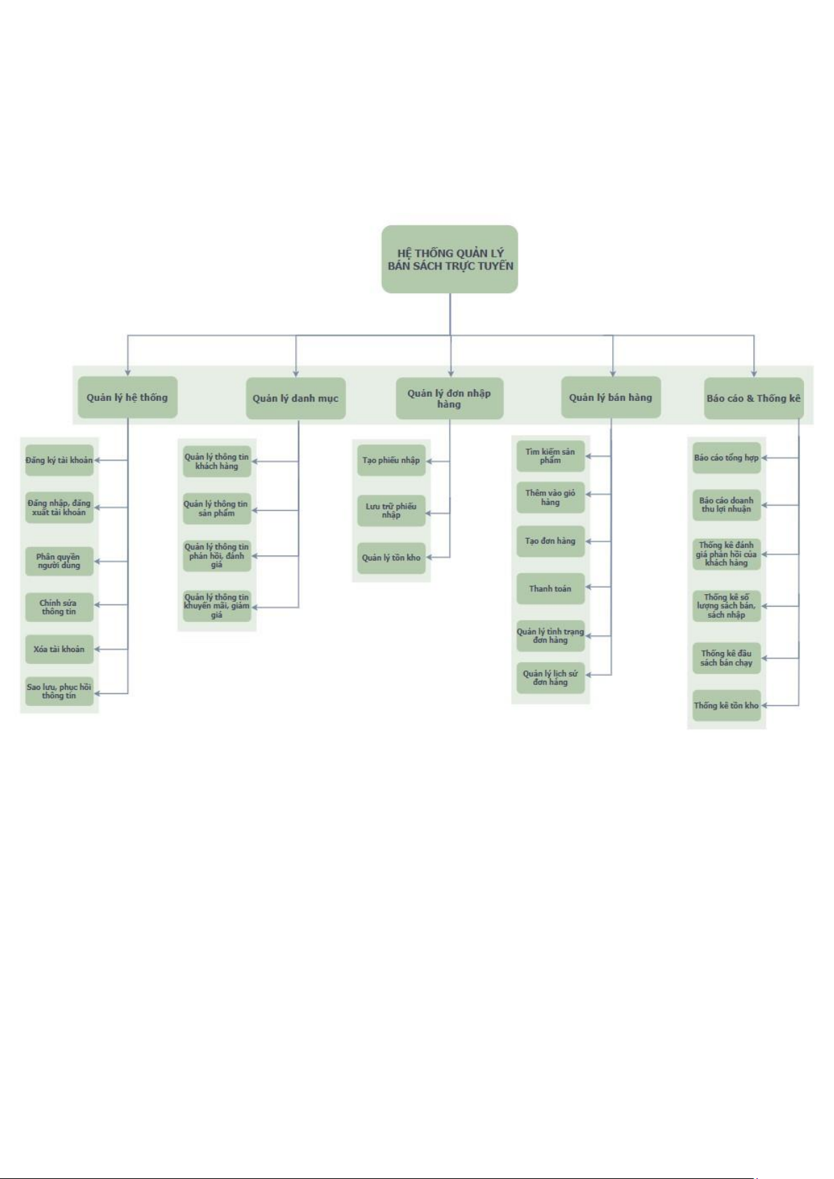 Dưới đây là sơ đồ phân cấp chức năng trong hệ thống bán sách trực tuyến: