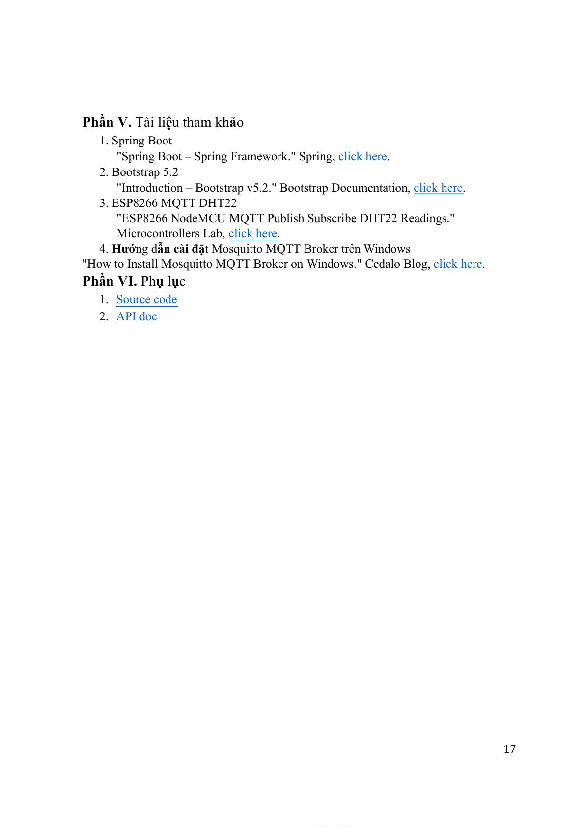 Phần VI. Phụ lục 1. Source code 2. API doc 17