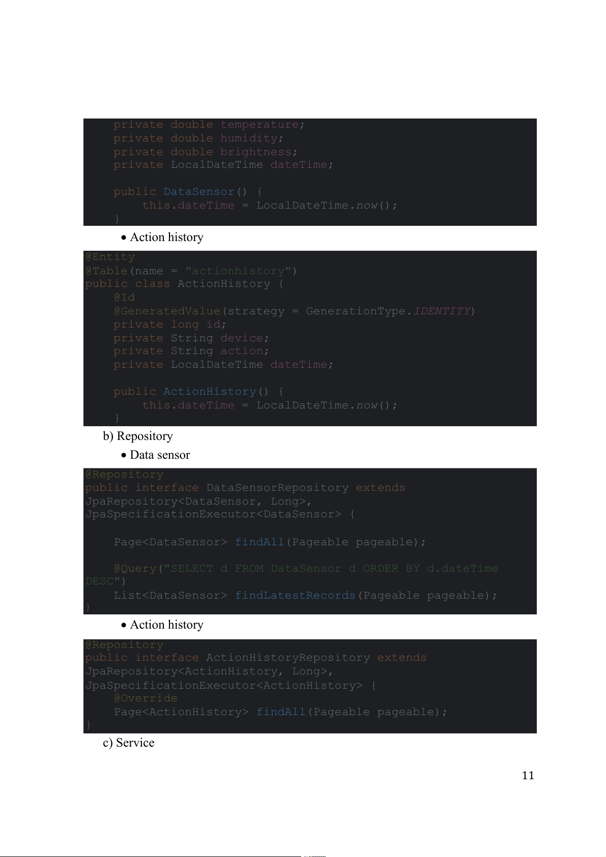 this.dateTime = LocalDateTime.now(); } b) Repository • Data sensor @Repository