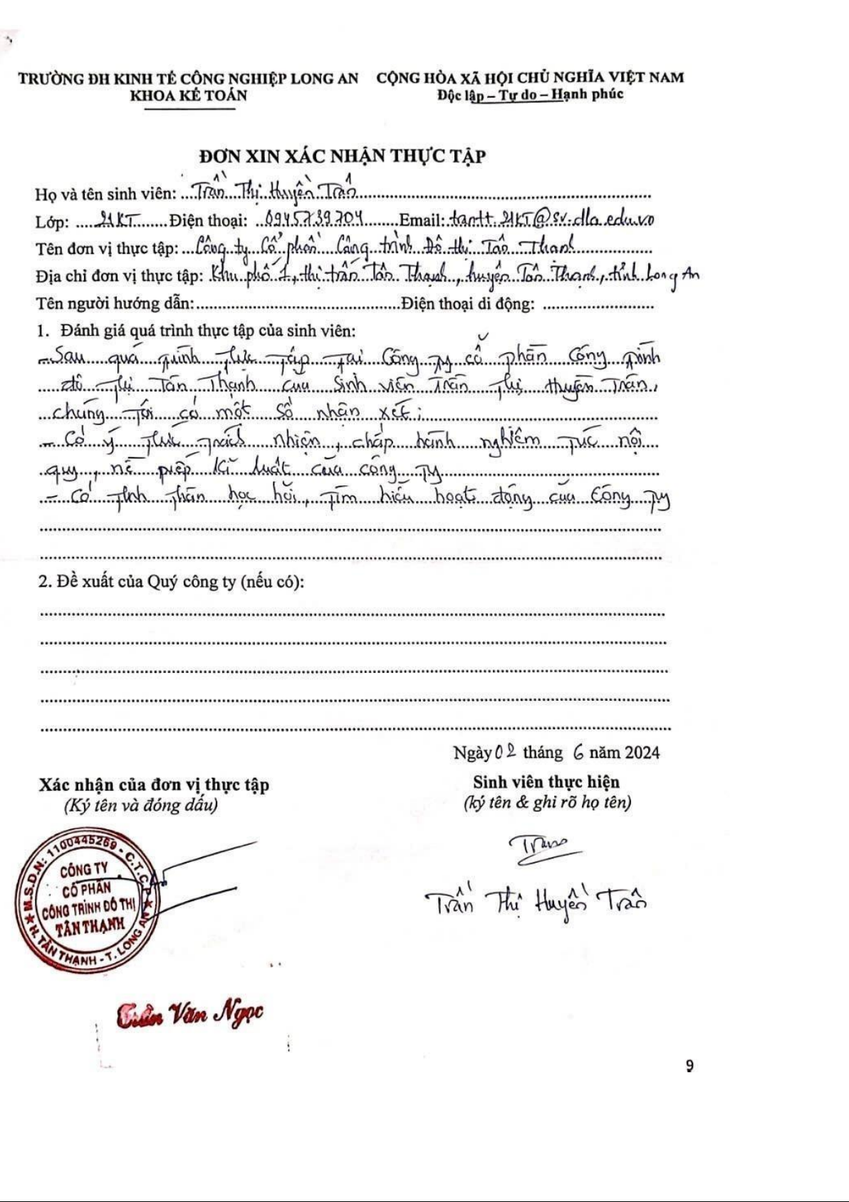 cung cấp tại Công ty Cổ phần Công trình Đô thị Tân Thạnh.....................43