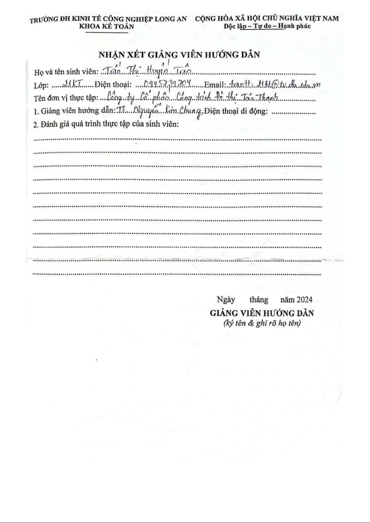 Kế Toán trường Đại học Kinh tế Công nghiệp Long An lời cảm ơn chân thành nhất.