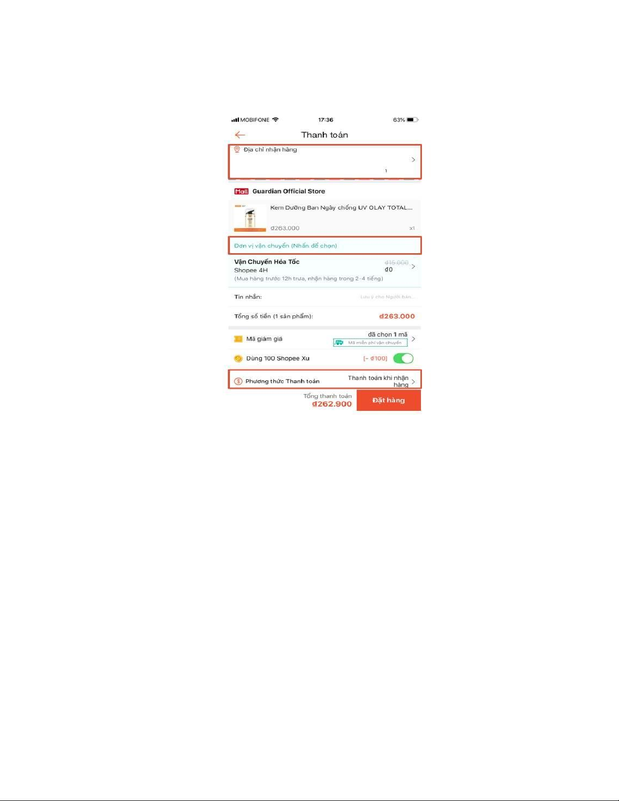 Bước 2: Người Mua đặt đơn hàng trên Shopee;