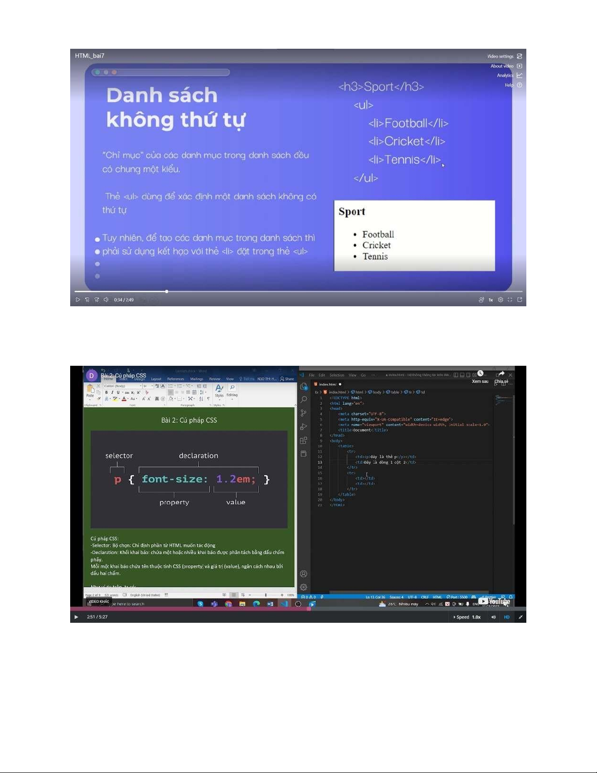 - Một số hình ảnh về video bài giảng: lOMoAR cPSD| 59421307 Video HTML Video CSS 2. Tài liệu