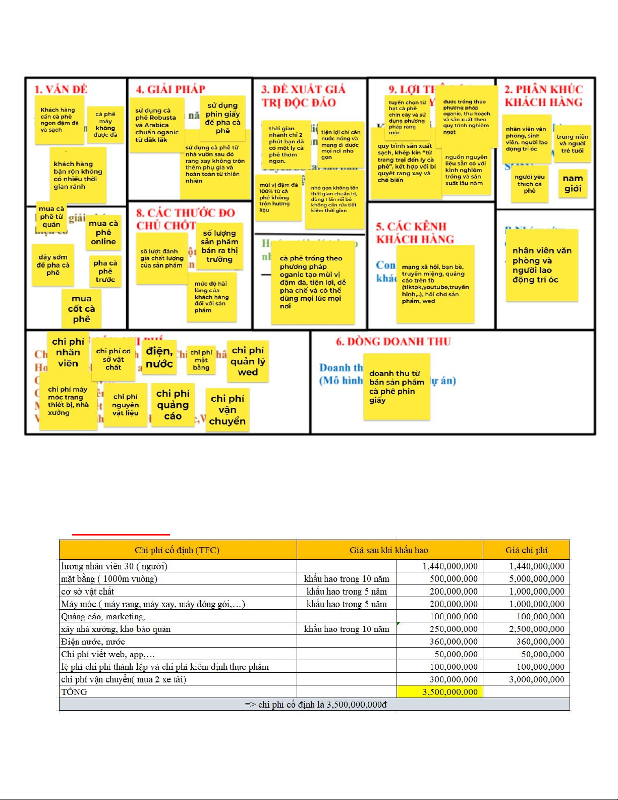 nhưng vẫn dữ được hương vị đậm đà của sản phẩm. Lean Canvas                              Bảng tính chi phi