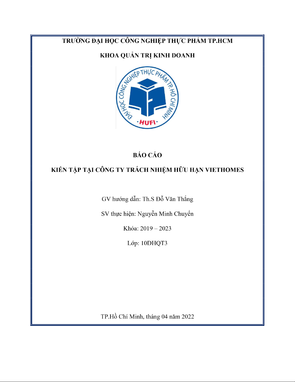 KIẾN TẬP TẠI CÔNG TY TRÁCH NHIỆM HỮU HẠN VIETHOMES