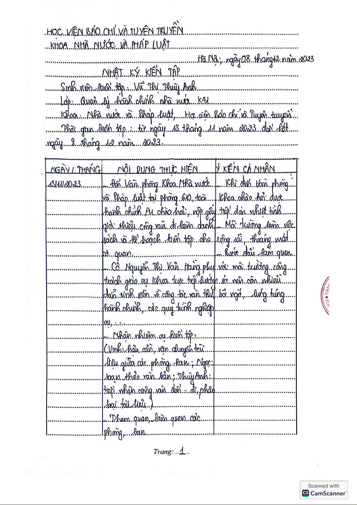 Báo cáo kiến tập Hoạt động quản lý văn phòng tại văn phòng khoa nhà nước và pháp luật môn Lý luận về hành chính nhà nước và pháp luật | Học viện Báo chí và Tuyên truyền