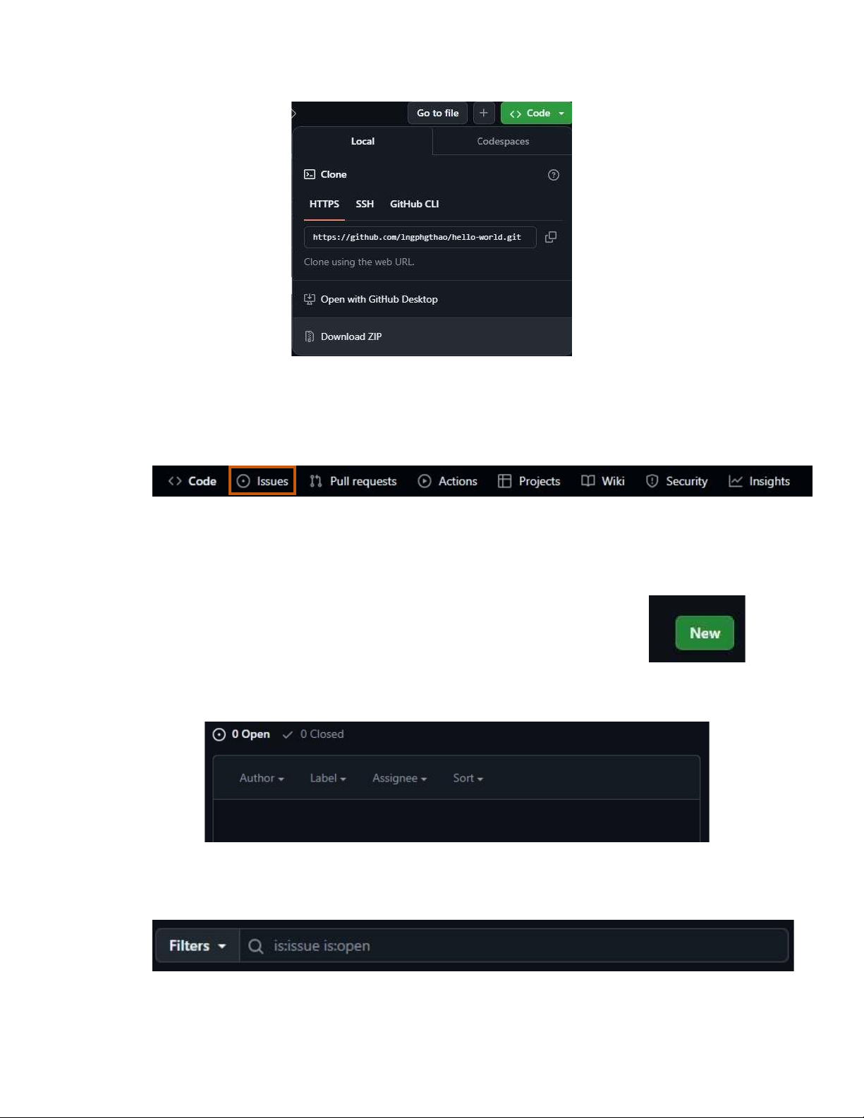 Tạo một issue mới: Nhấp vào nút "New Issue" để tạo một