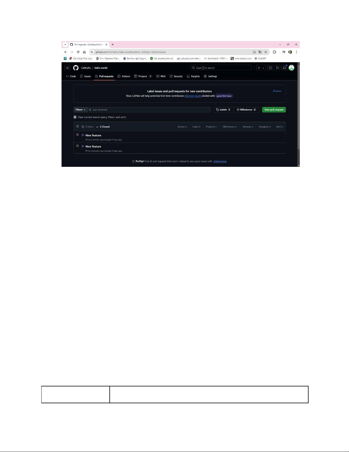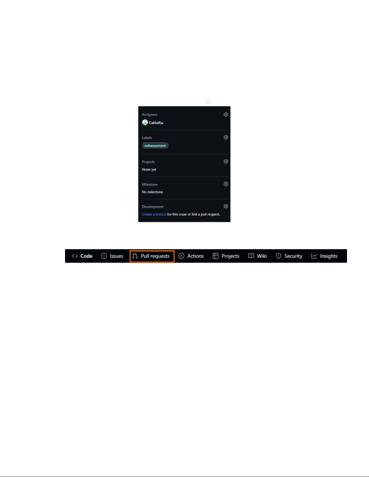 Assignees: gán cho thành viên trong repo Comment, feedback. Hình 7. Github issue 3.3. Tab Pull Requests