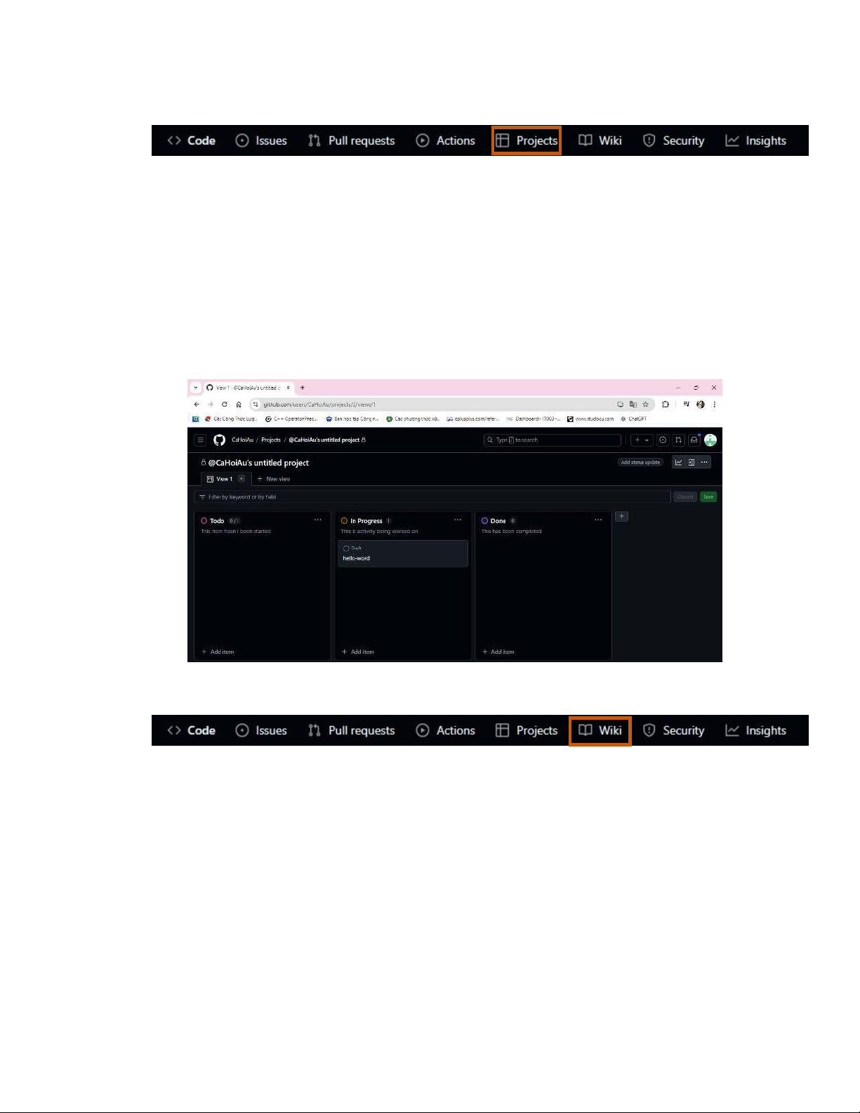 Hình 11. Chức năng của tab Projects 3.6. Tab Wiki