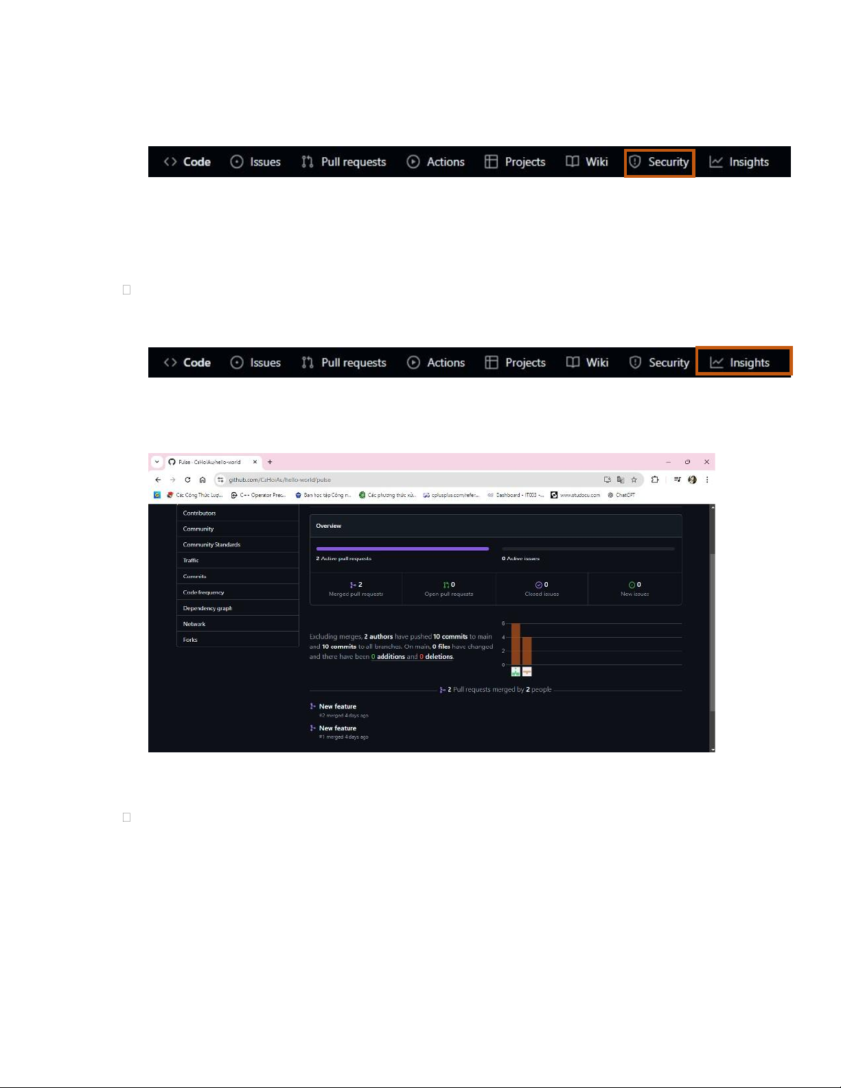 Tab này tập trung vào các tính năng bảo mật của repository, bao gồm quản lý