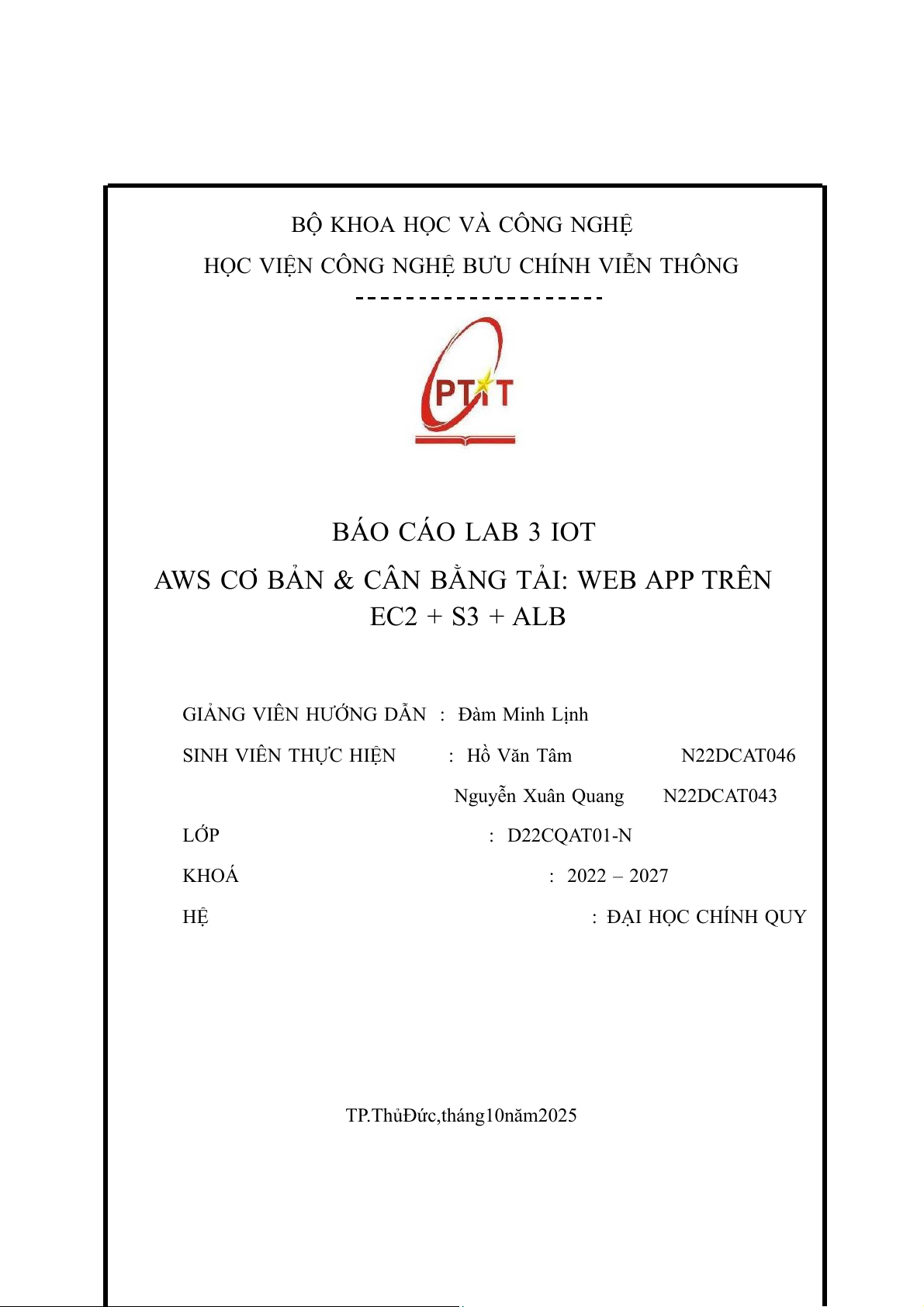 TP. Thủ Đức, tháng 10 năm 2025 I.