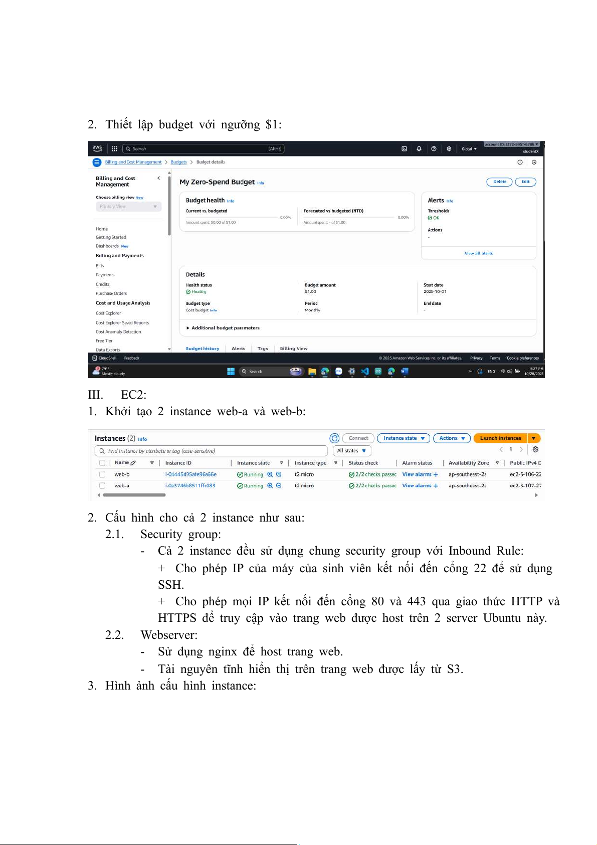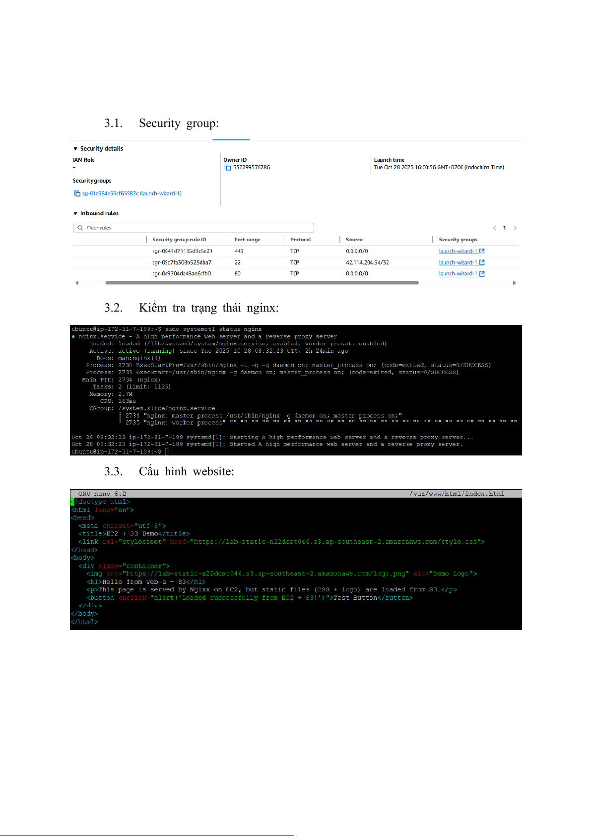 3. Hình ảnh cấu hình instance: 3.1. Security group: 3.2.
