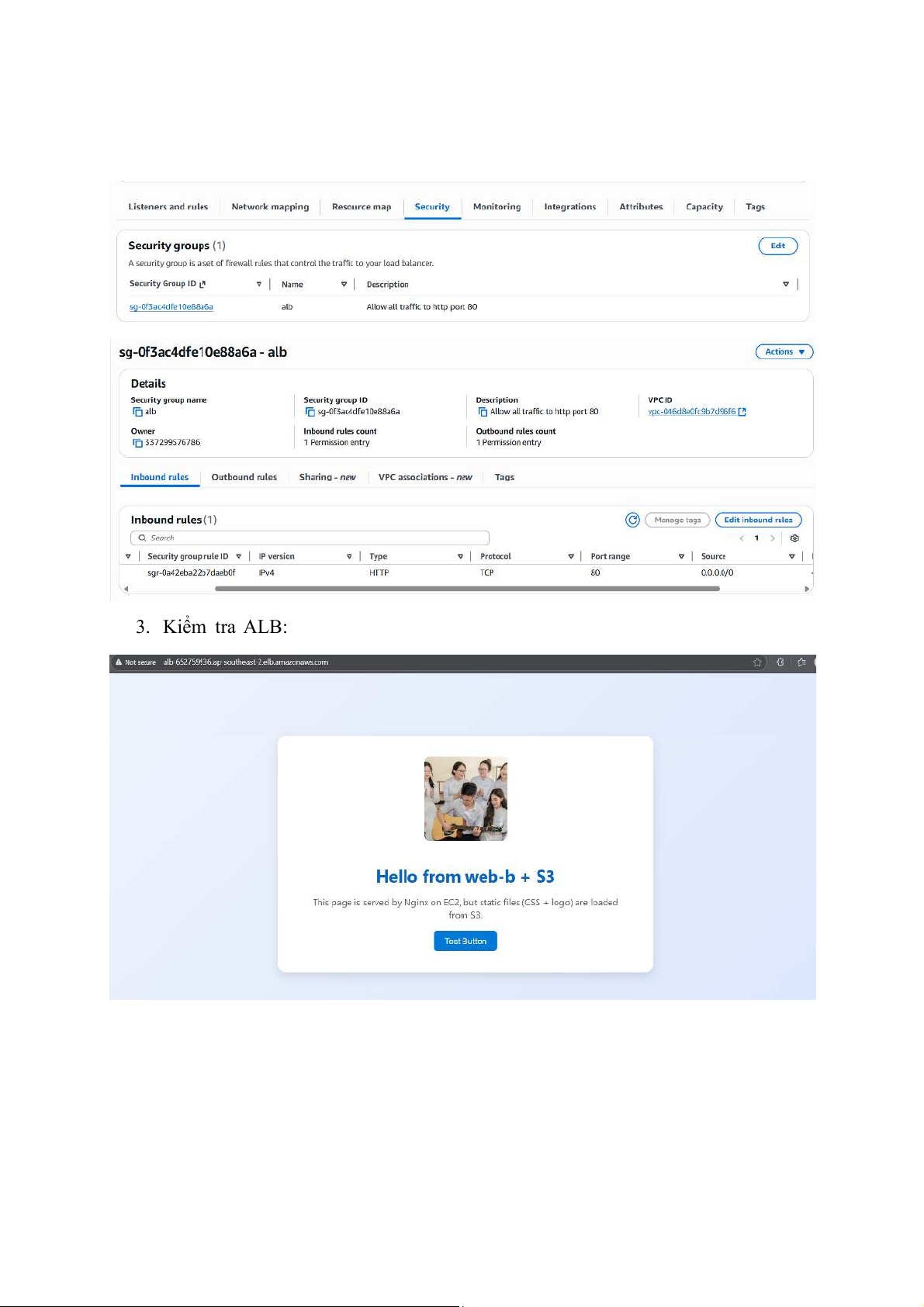 thức HTTP thì ALB mới hoạt động. 3. Kiểm tra ALB: VI.