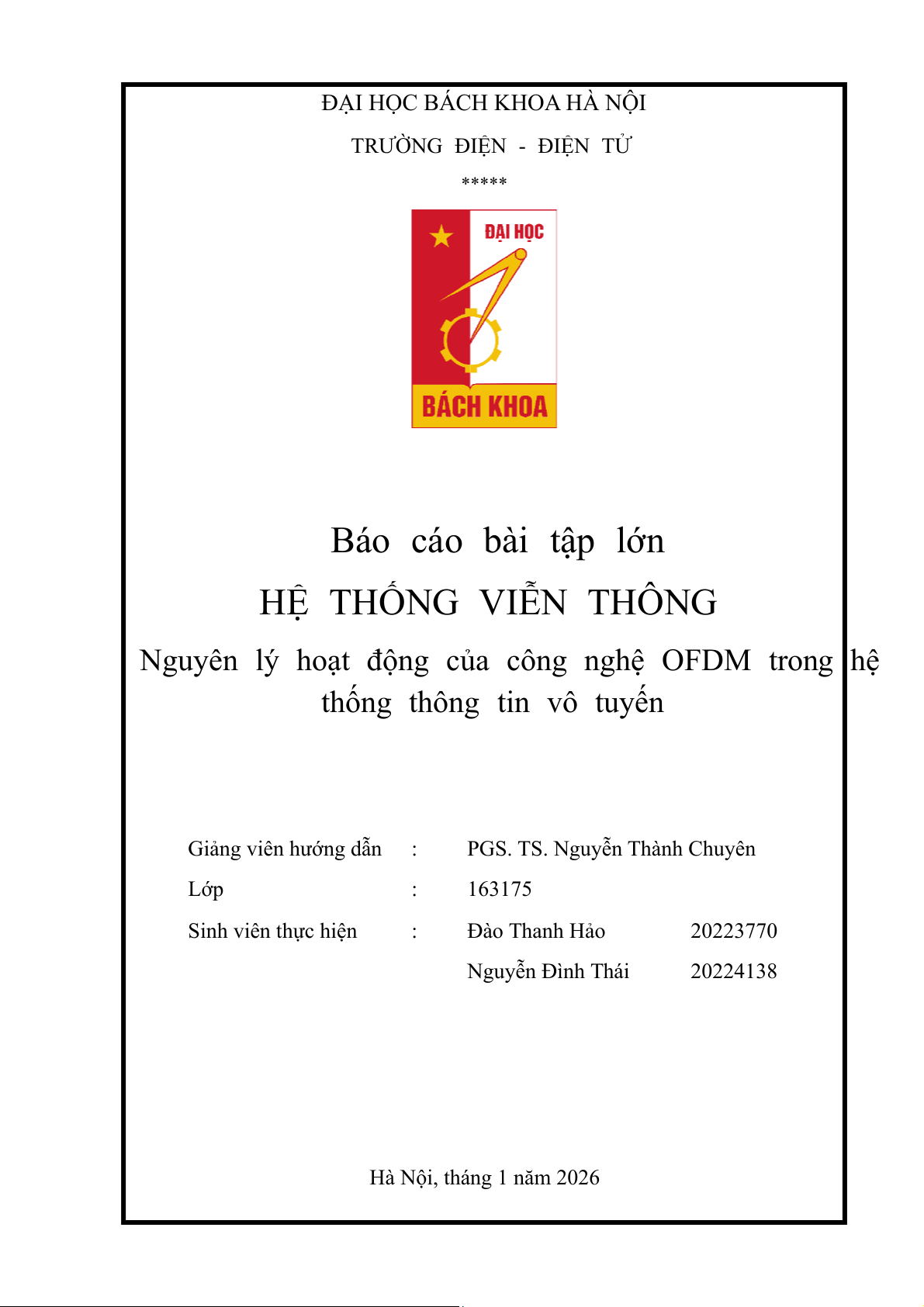 PGS. TS. Nguyễn Thành Chuyên Lớp : 163175 Sinh viên thực hiện : Đào Thanh Hảo 20223770 Nguyễn Đình Thái 20224138 Hà Nội, tháng 1 năm 2026