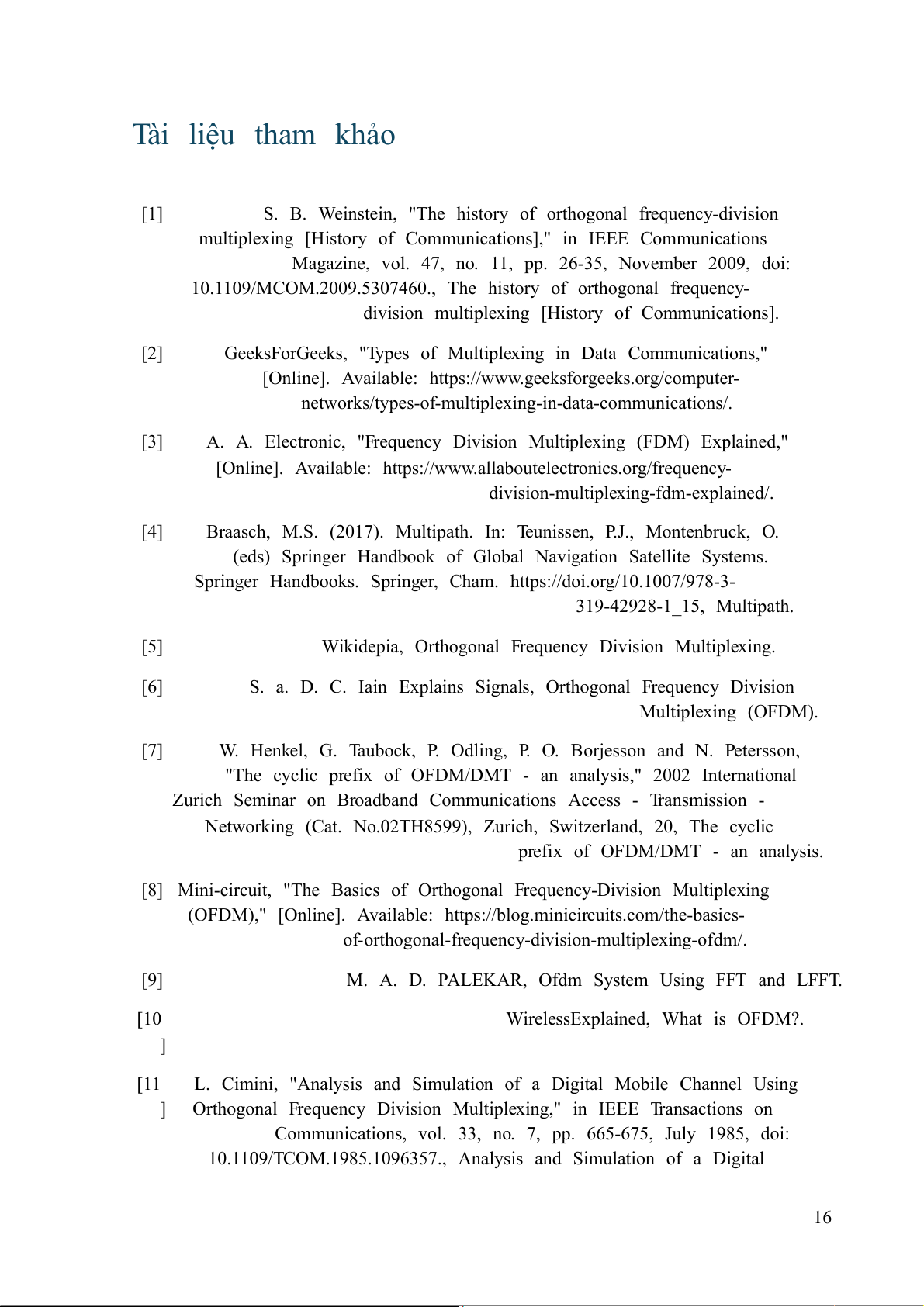 OFDM vẫn sẽ là nền tảng công nghệ cốt lõi cho hệ thống thông tin vô tuyến hiện đại. 15 Tài liệu tham khảo [1]