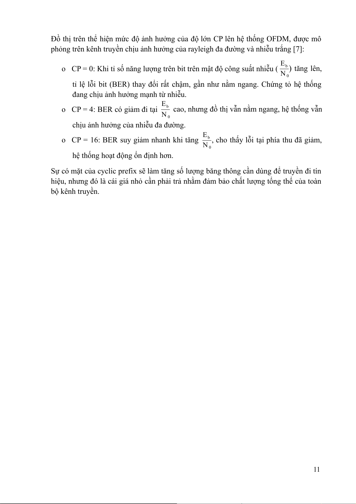 Sự có mặt của cyclic prefix sẽ làm tăng số lượng băng thông cần dùng để truyền đi tín