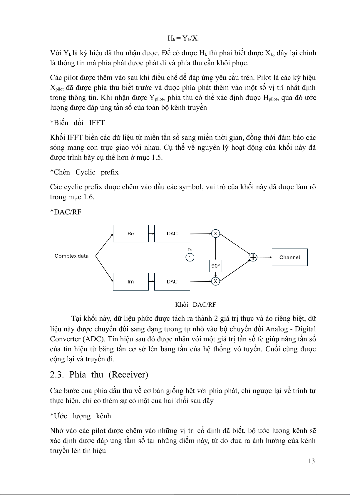 Các cyclic prefix được chêm vào đầu các symbol, vai trò của khối này đã được làm rõ trong mục 1.6. *DAC/RF Khối DAC/RF