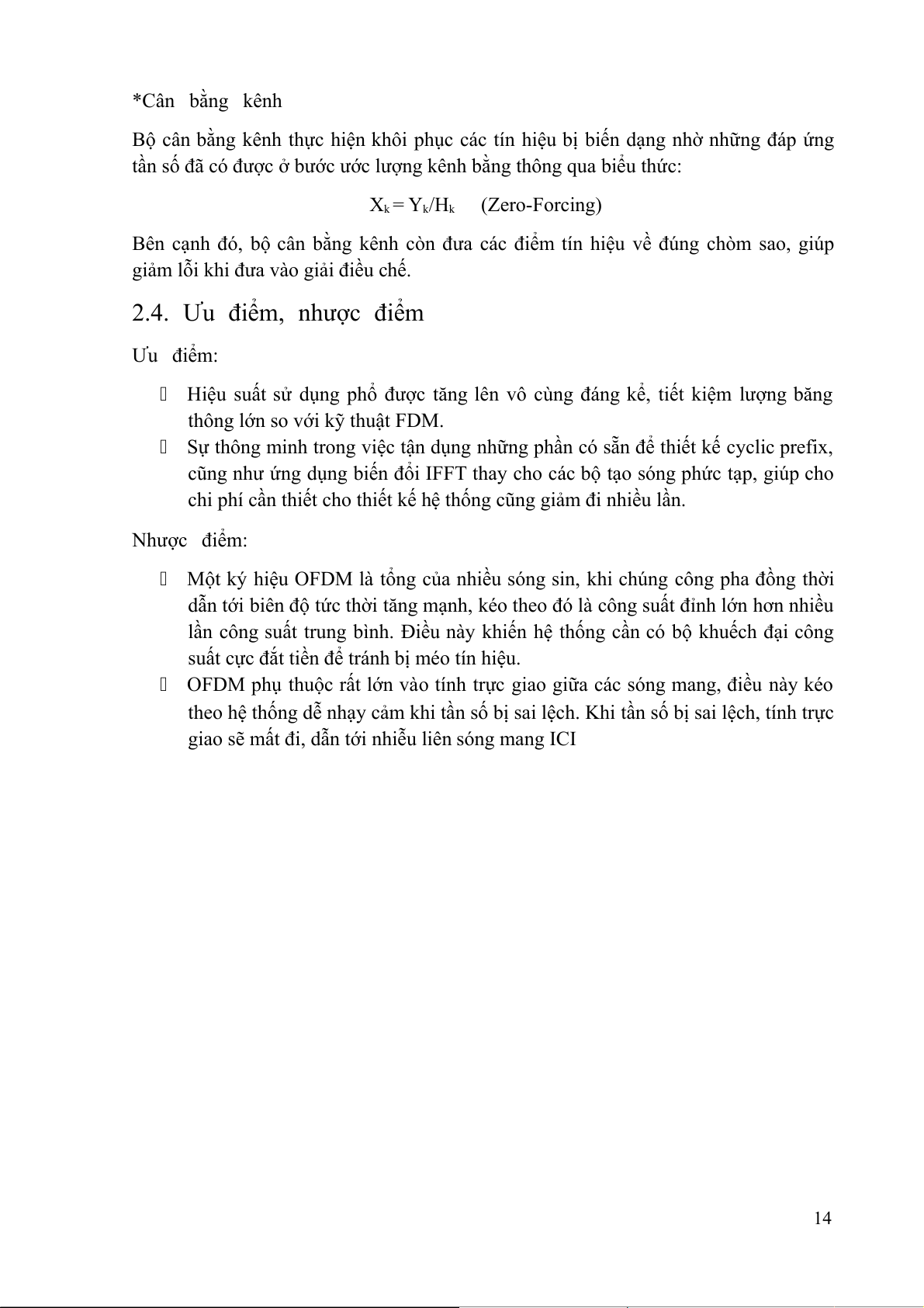 tần số đã có được ở bước ước lượng kênh bằng thông qua biểu thức: Xk = Yk/Hk (Zero-Forcing)