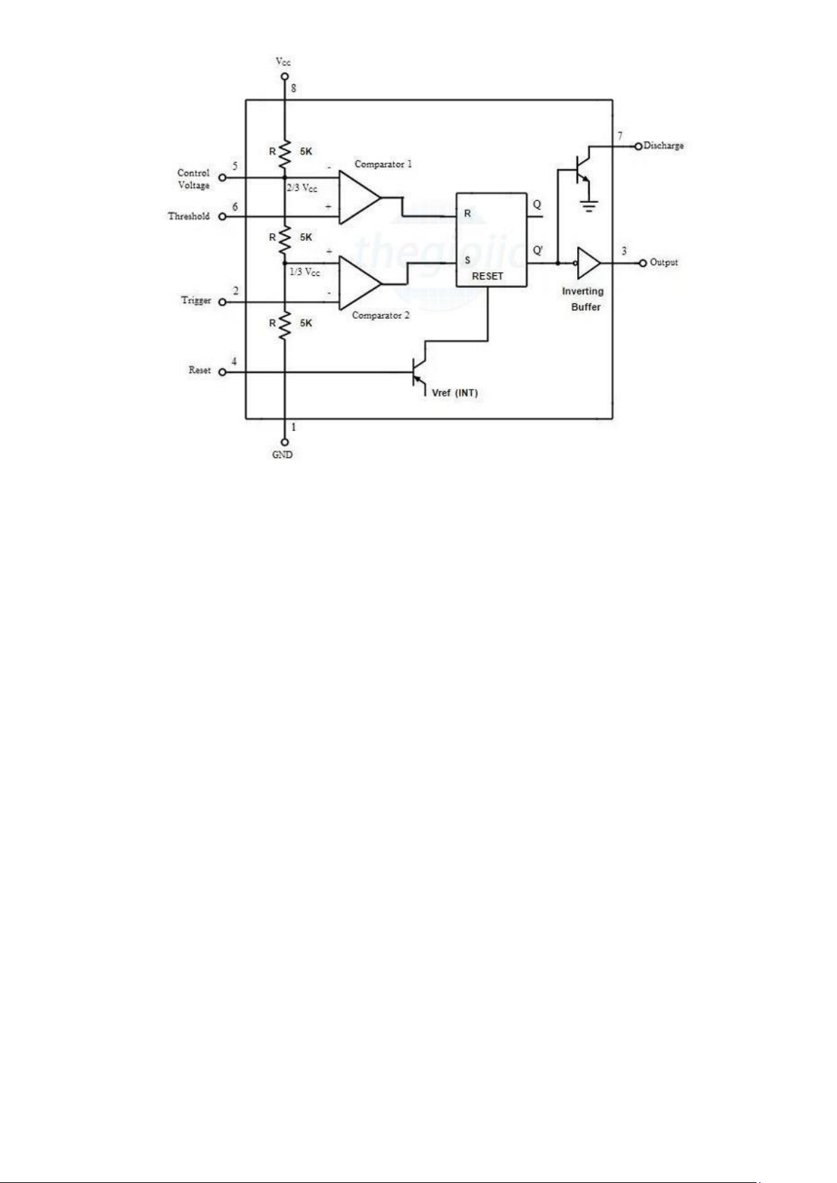 hoạt với iện áp tham chiếu VCC 1/3. Tùy thuộc iện áp của chân 2 so