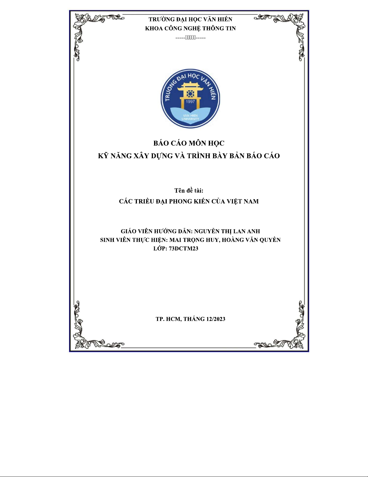 Báo cáo môn học: Các triều đại phong kiến Việt Nam - Nhóm 9 (73DCTM)