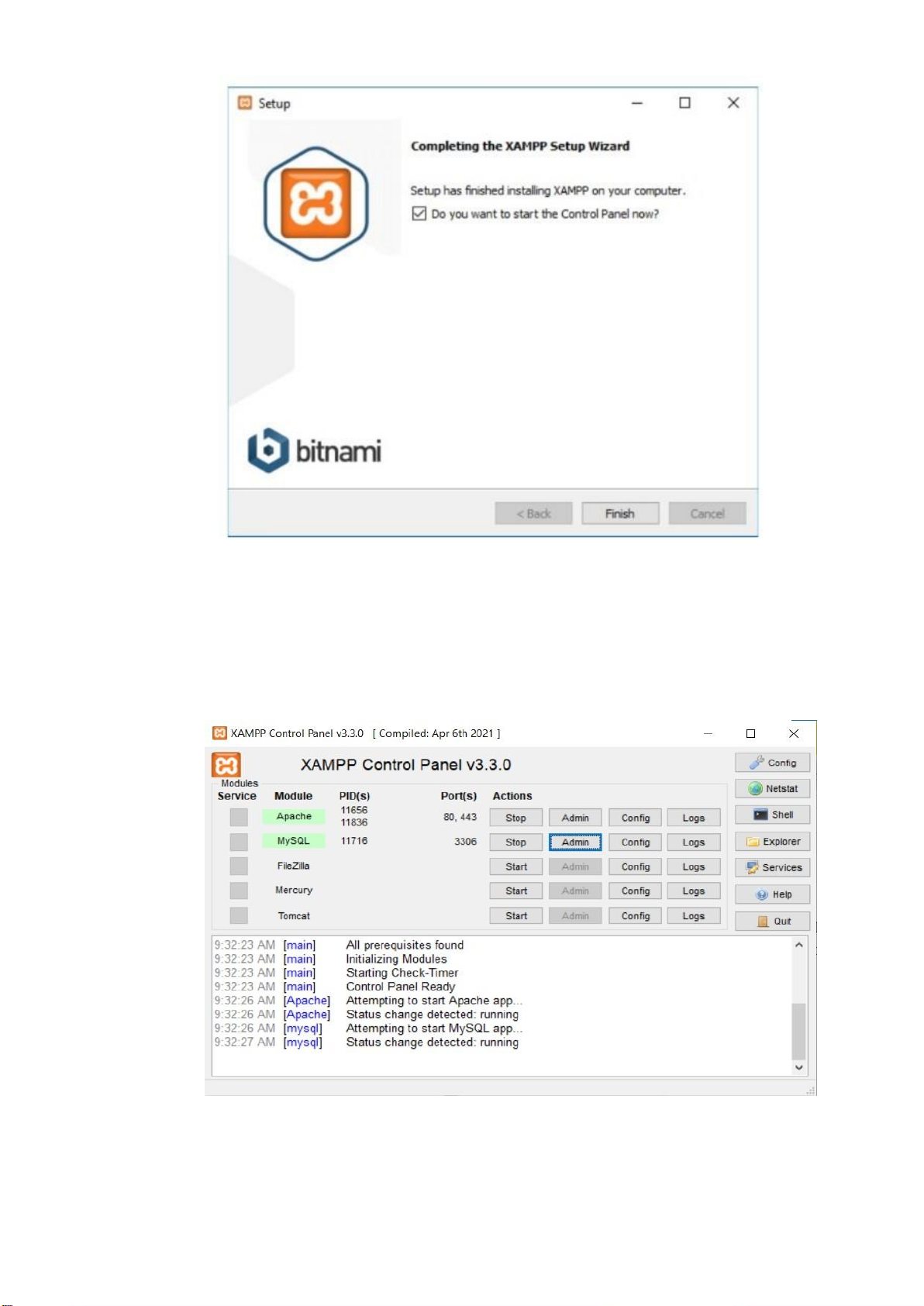 Sau khi hoàn thành cài đặt Xampp, chọn “Finish” để kết thúc quá trình cài đặt. lOMoARcPSD| 59629529