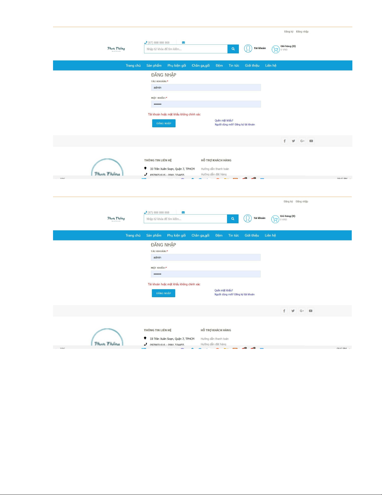 Hình 1.7: Hệ thống thông báo nhập sai tài khoản hoặc mật khẩu