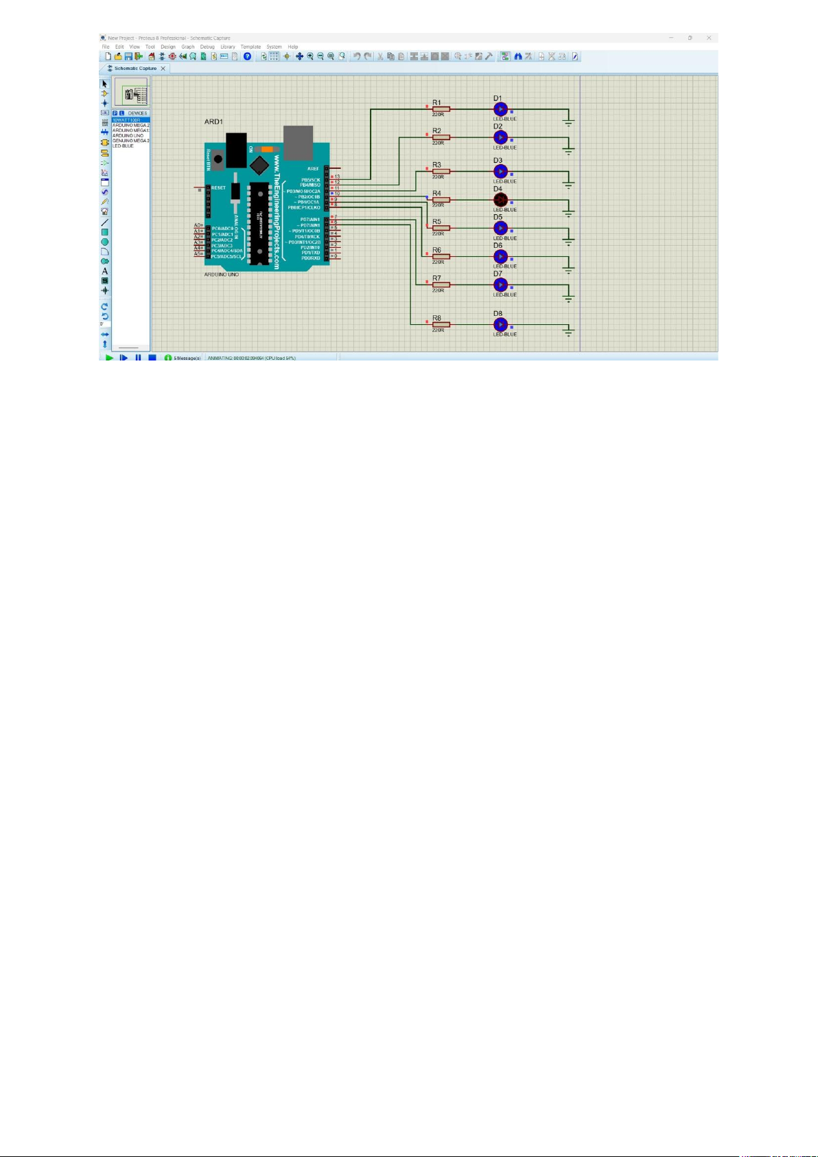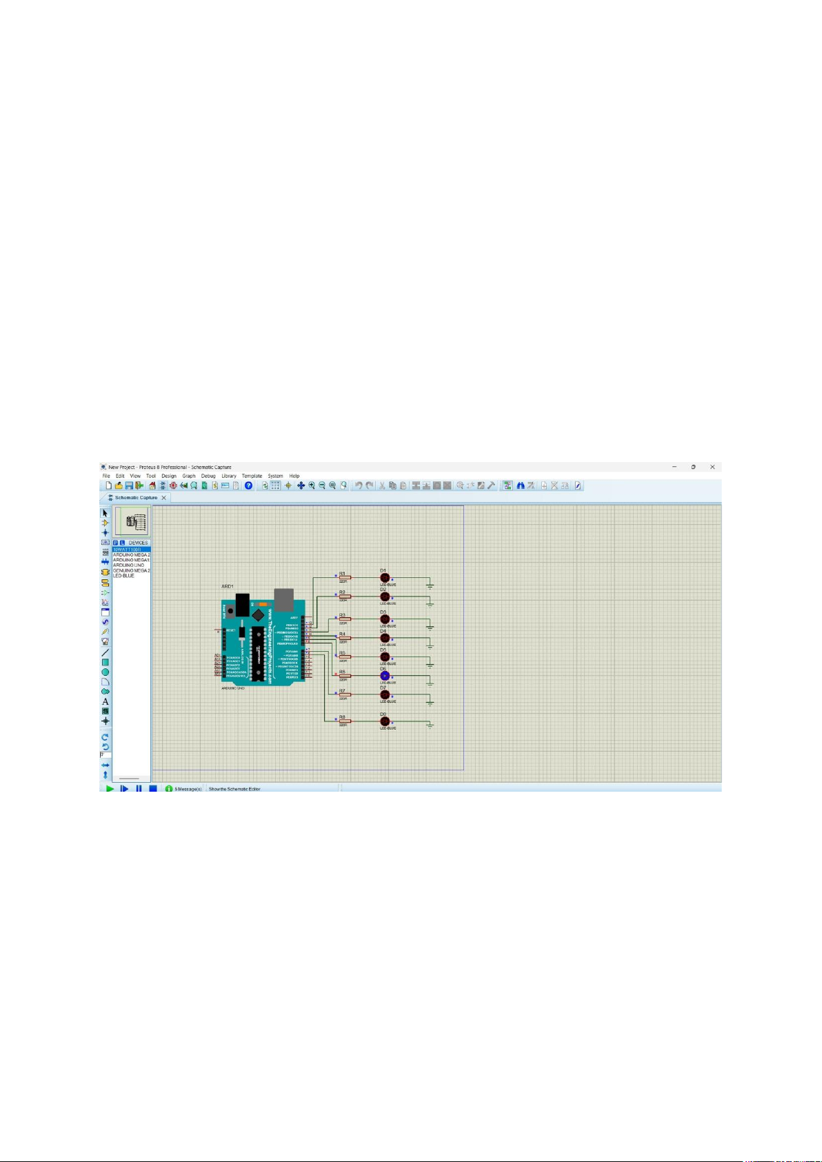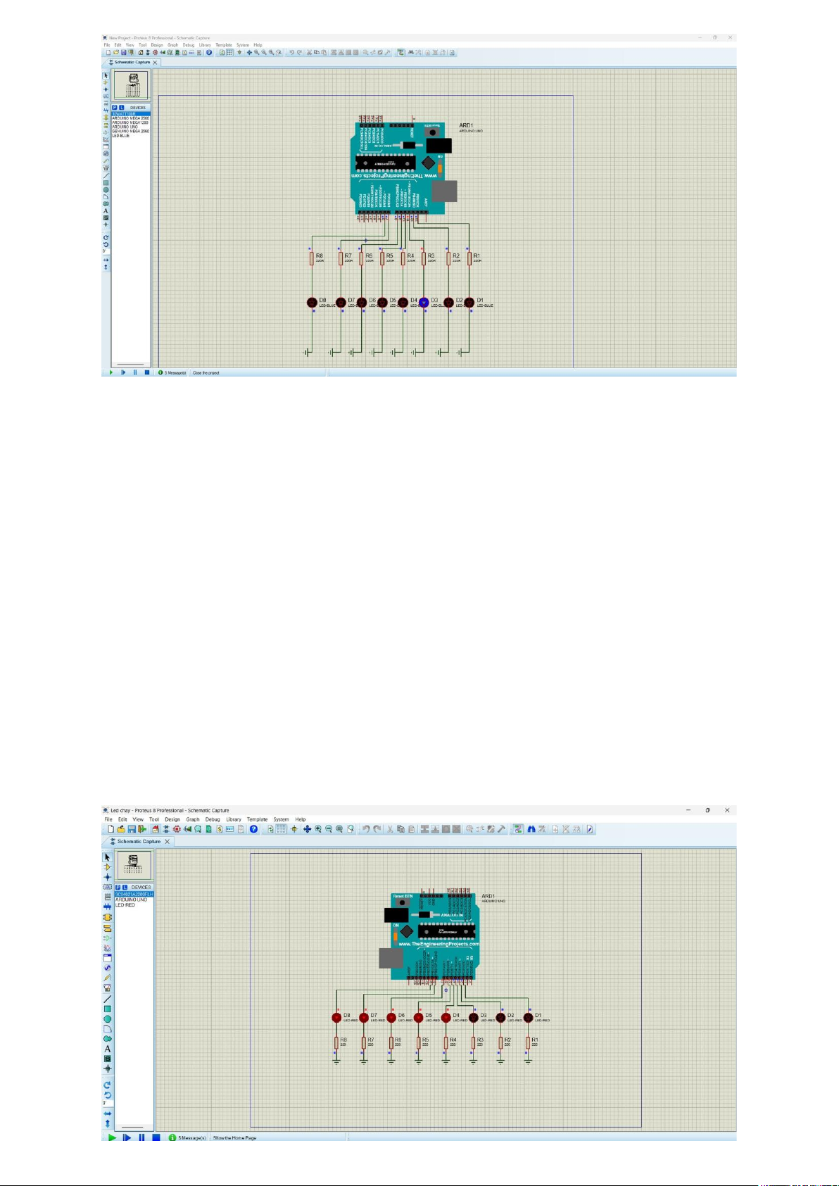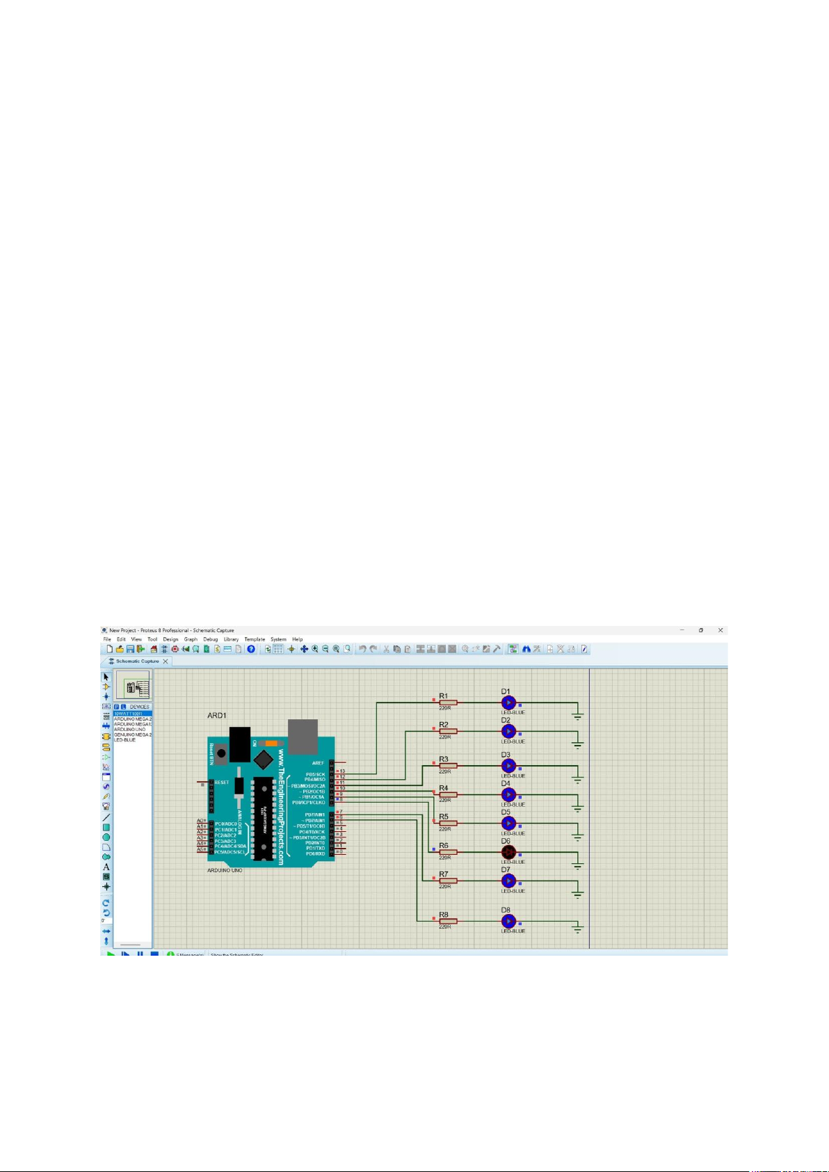 Sinh viên thực hiện: Lại Việt Anh MSSV: 20234 08 Hà Nội, 05/2025 MODULE 1: lOMoAR cPSD| 61552860 Programm 1.1: #include Output LED0 = 6; Output LED1 = 7; Output LED2 = 8; Output LED3 = 9; Output LED4 = 10; Output LED5 = 11; Output LED6 = 12; Output LED7 = 13; Delay DELAY; void setup() {} void loop() { //1 LED0 = 0; LED1 = 1; LED2 = 1; LED3 = 1; LED4 = 1; LED5 = 1; LED6 = 1; LED7 = 1; DELAY = 500; //2 LED0 = 1; LED1 = 0; LED2 = 1; LED3 = 1; LED4 = 1; LED5 = 1; LED6 = 1; LED7 = 1; DELAY = 500; //3 lOMoAR cPSD| 61552860 LED0 = 1; LED1 = 1; LED2 = 0; LED3 = 1; LED4 = 1; LED5 = 1; LED6 = 1; LED7 = 1; DELAY = 500; //4 LED0 = 1; LED1 = 1; LED2 = 1; LED3 = 0; LED4 = 1; LED5 = 1; LED6 = 1; LED7 = 1; DELAY = 500; //5 LED0 = 1; LED1 = 1; LED2 = 1; LED3 = 1; LED4 = 0; LED5 = 1; LED6 = 1; LED7 = 1; DELAY = 500; //6 LED0 = 1; LED1 = 1; LED2 = 1; LED3 = 1; lOMoAR cPSD| 61552860 LED4 = 1; LED5 = 0; LED6 = 1; LED7 = 1; DELAY = 500; //7 LED0 = 1; LED1 = 1; LED2 = 1; LED3 = 1; LED4 = 1; LED5 = 1; LED6 = 0; LED7 = 1; DELAY = 500; //8 LED0 = 1; LED1 = 1; LED2 = 1; LED3 = 1; LED4 = 1; LED5 = 1; LED6 = 1; LED7 = 0; DELAY = 500; } lOMoAR cPSD| 61552860 Programm 1.2: #include Output LED0 = 6; Output LED1 = 7; Output LED2 = 8; Output LED3 = 9; Output LED4 = 10; Output LED5 = 11; Output LED6 = 12;