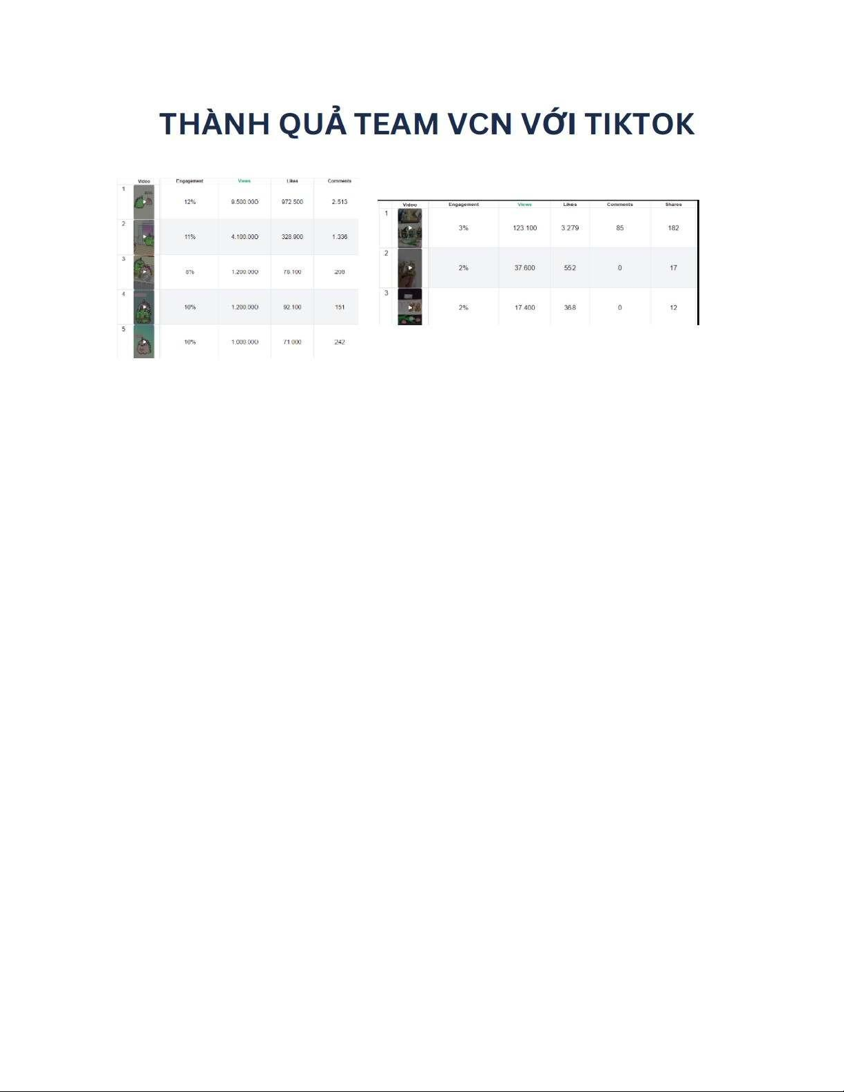 Hình 1.7: Thành quả của Team VCN với Tiktok Danh mục bảng