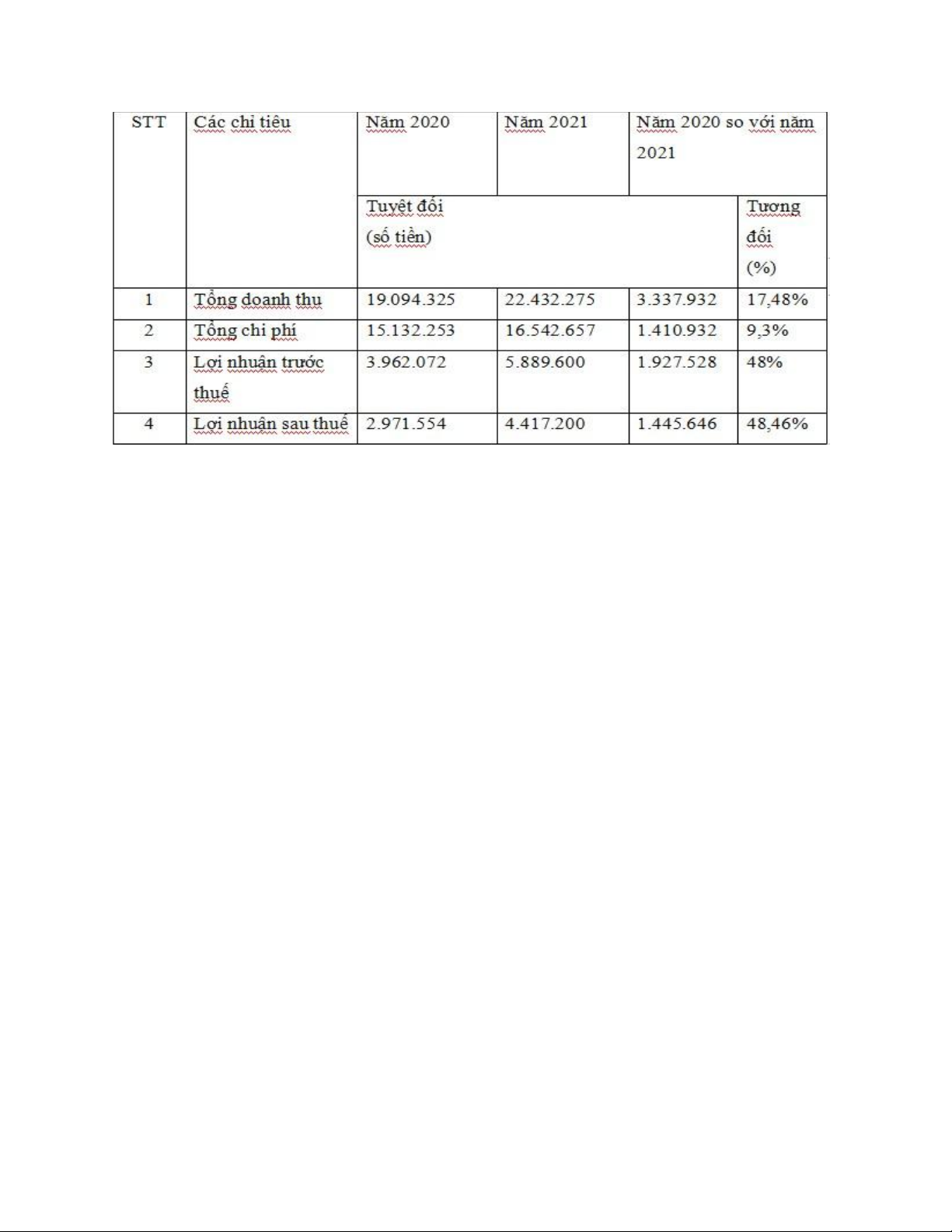 Qua bảng trên ta thấy tình hình kinh doanh của công ty trong 2 năm 2020 và