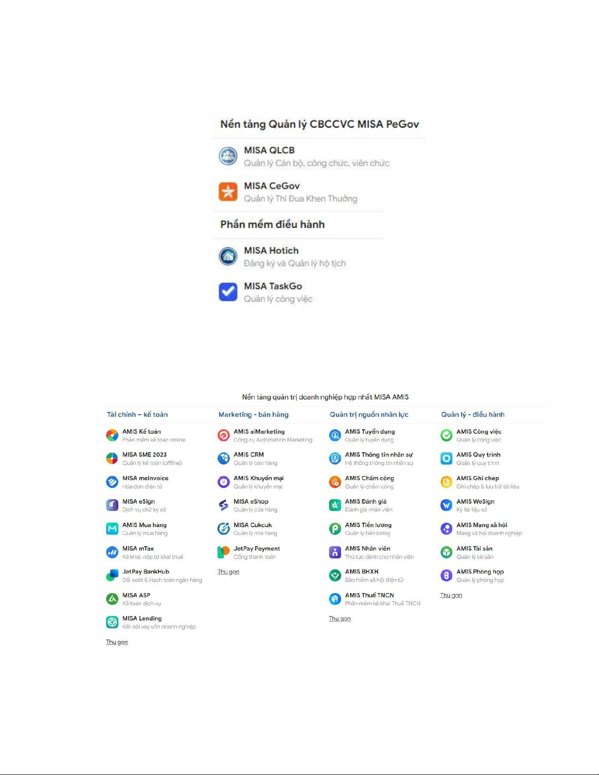 (Nguồn: misa.vn) Hình 1.6: Các phần mềm thuộc nền tảng Quản trị doanh nghiệp MISA AMIS        (Nguồn: misa.vn)